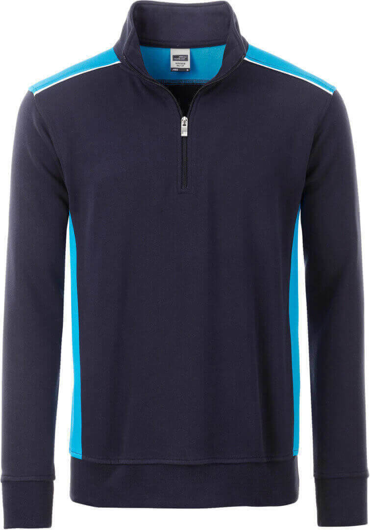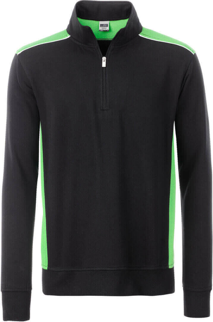 290g/m², 70% bavlna, 30% polyester načechraná vnitřní strana, kontrastní vklady po stranách a na ramenou, lemovka v přední části ramenou, žebrované manžety s elastanem na rukávech a v pase, lze prát na 60° a sušit v sušičce
