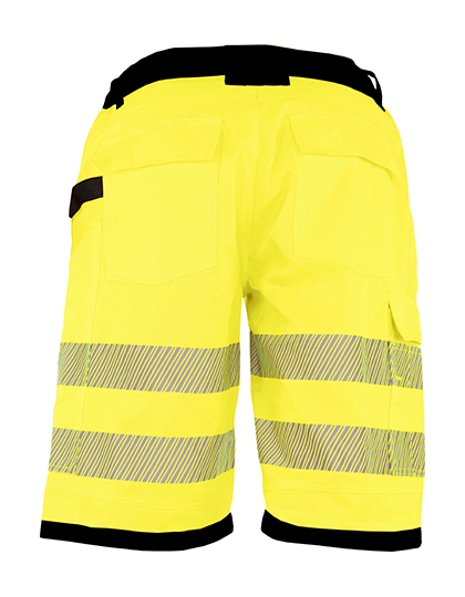 Řada pro firemní identitu | EN ISO 20471:2013/A1:2016, třída 1 | Materiály: STANDARD 100 od OEKO-TEX® 65% polyester / 35% bavlna, 250 g/m² | Dva dělené 5cm reflexní pruhy kolem nohavic | Zpevnění na zátěžových bodech | Poutko na kladivo | D kroužek | Kapsa na skládací metr | Boční kapsa | Částečně elastický pas | Černé kontrastní prvky | Výrobce zaručuje reflexní vlastnosti v souladu s normou EN pro 25 praní při 60 °C. | Vybaveno čárovým kódem EAN | Návod k použití ve 24 úředních jazycích EU | Jednotlivě balené v polyetylenových sáčcích.