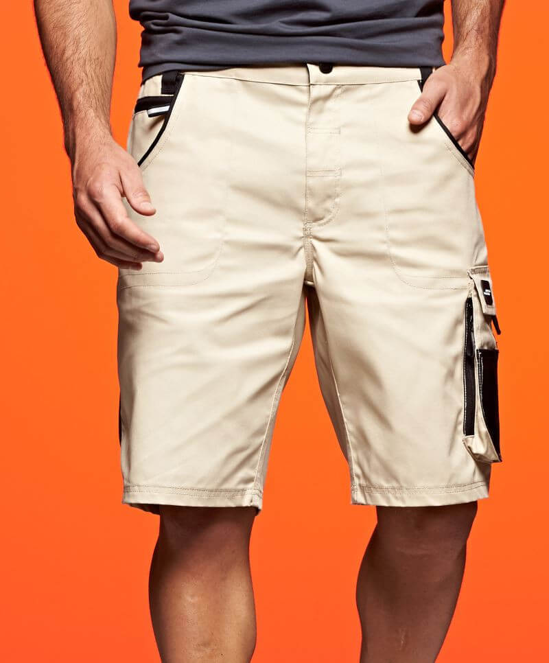 Pracovní šortky s elastickým lemem a poutky na pásek, 2 kapsy na zip, vyztužené kapsy Cordura®, různé kapsy na nářadí, odolný 3 krát prošívaný šev, vylepšená kvalita. Doporučené prát do 60 °. Vyrobeno z 65% polyesteru, 35% bavlny, polyamidu.