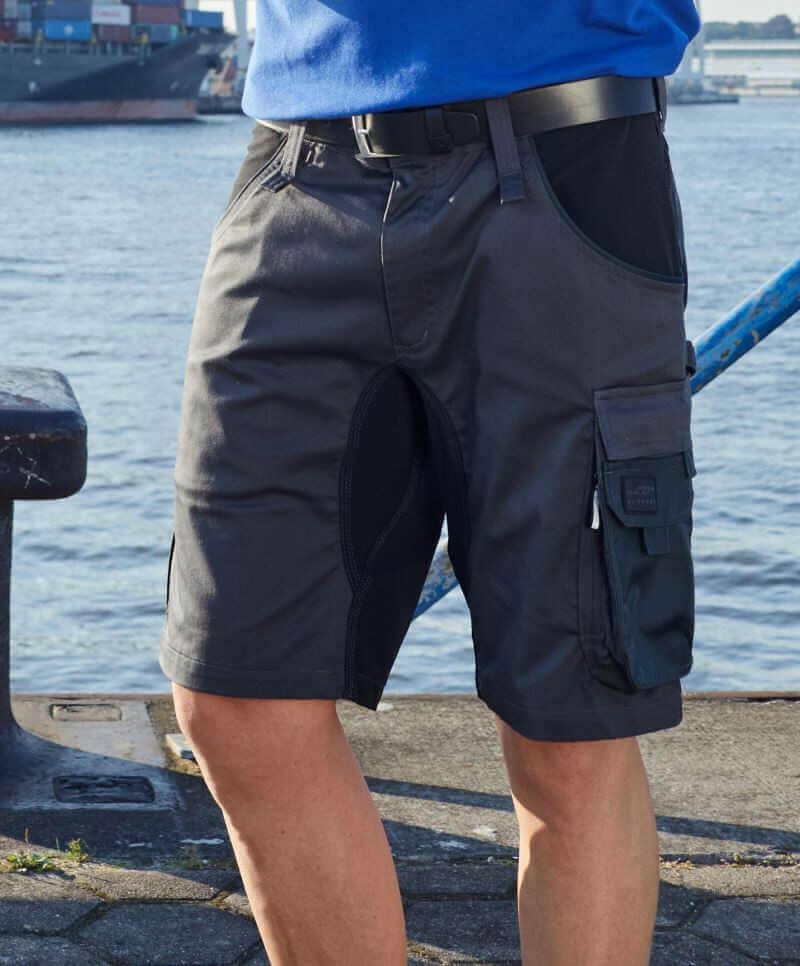 Materiál: 260 g/m², vnější materiál 1: 65% recyklovaný polyester, 32% certifikovaná organická bavlna, 3% elastan, vnější materiál 2: 94% polyamid, 6% elastan, lemování: 100% polyamid. Pás s poutky na opasek, zip YKK, zasouvací kapsy, několik kapes na nářadí, kapsy vyztužené Cordurou®, kapsa na pravítko, kapsa na mobil a kapsa na pero, 1 kapsa na zip, 3-směrně prošívaný šev odolný vůči roztržení elastické látky.