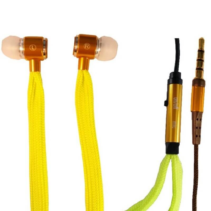 Vtipná špuntová sluchátka s mikrofonem pro handsfree telefonování. Kabel je umístěn v textilní tkaničce v zářivých barvách. Potisk tamponem, případně CMYK na špunty.