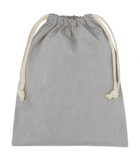 140 g/m², 65% bavlna (recyklovaná), 35% polyester (recyklovaný), stahovací šňůrka v přírodním provedení, boční švy s overlockovým prošíváním uvnitř, možnost praní na 60°C, max. 140 g/m². plocha pro potisk v cm: 2XS: 7x10, XS: 11x15, S: 20x25, vhodné na vyšívání, sítotisk a transferový potisk (vyžehlené tašky).