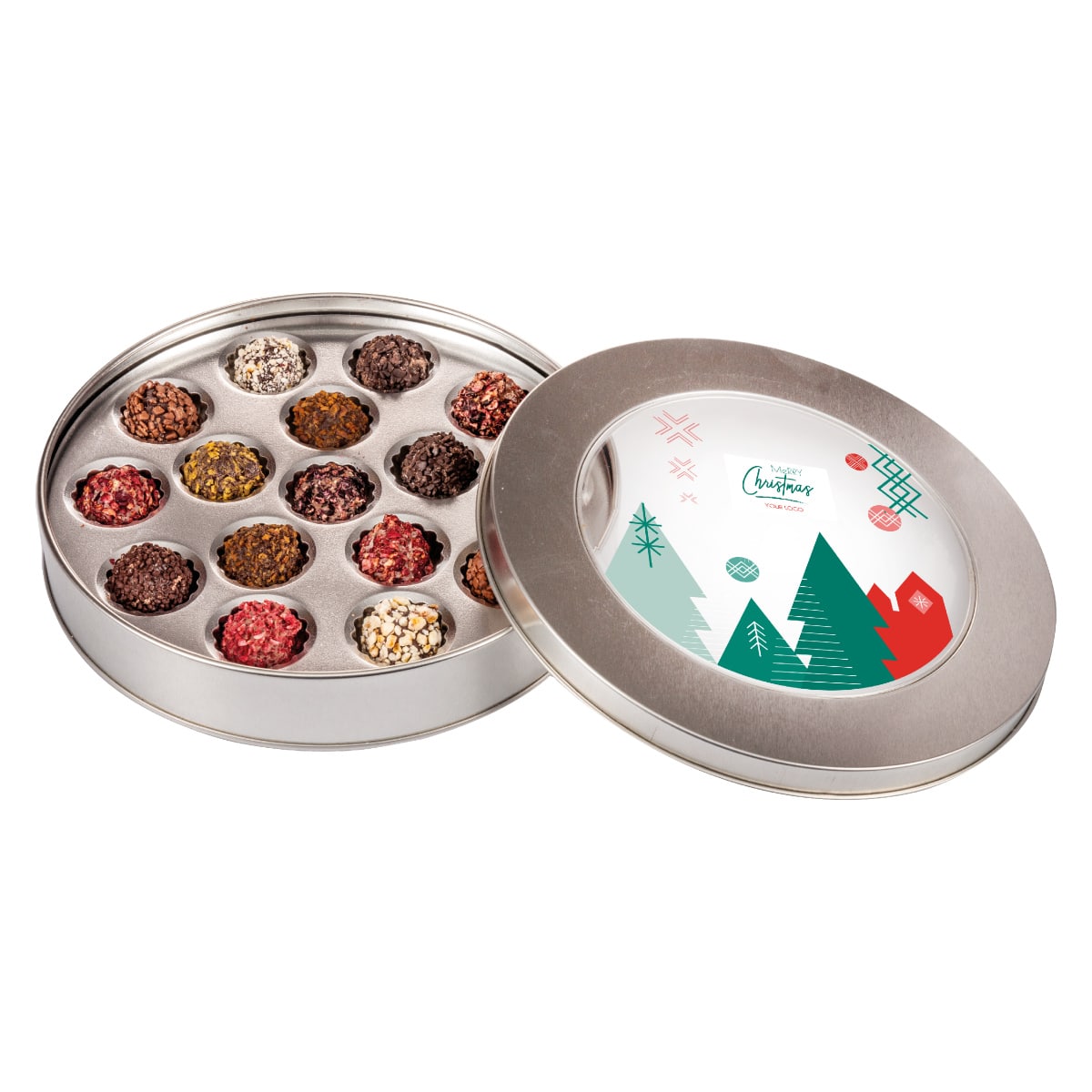 Jedinečný design s neuvěřitelně vychucenými pralinkami ve 12 příchutích. Pralinky se nacházejí v kovové krabičce s okénkem. Na víčko je možný nálepka nebo přímý digitální potisk. Waw efekt, na který se jen tak nezapomene.