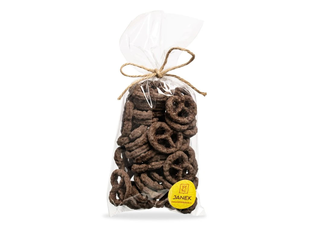 Křupavé preclíky obalené v 64% hořké čokoládě JANEK jsou lahodným spojením klasiky a prémiové čokolády. Bez leštidel, bez palmového oleje a bez lepku. Složení: hořká čokoláda (kakaová hmota 64 %, kakaové máslo, cukr, emulgátor: sójový lecitin, aroma: přírodní vanilka), preclíky 40 % (pšeničná mouka, slunečnicový olej, sůl, pšeničný škrob, ječný sladový extrakt, mono- a diglyceridy mastných kyselin, regulátor kyselosti: hydroxid sodný). Může obsahovat stopy arašídů a ořechů. Váha: 100 g
