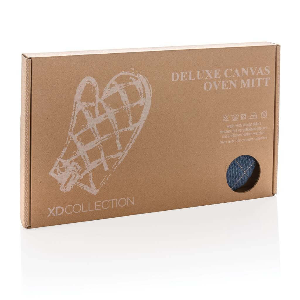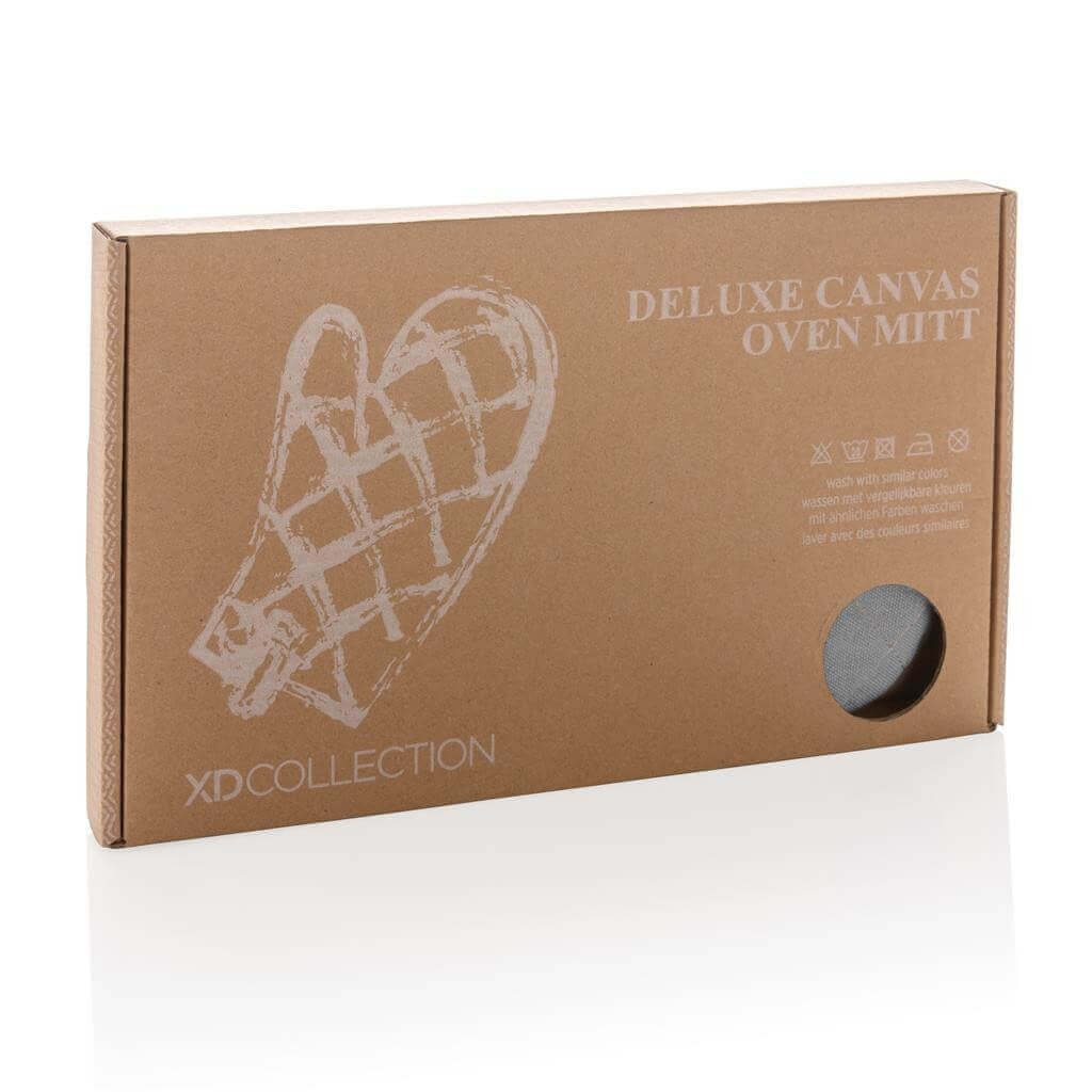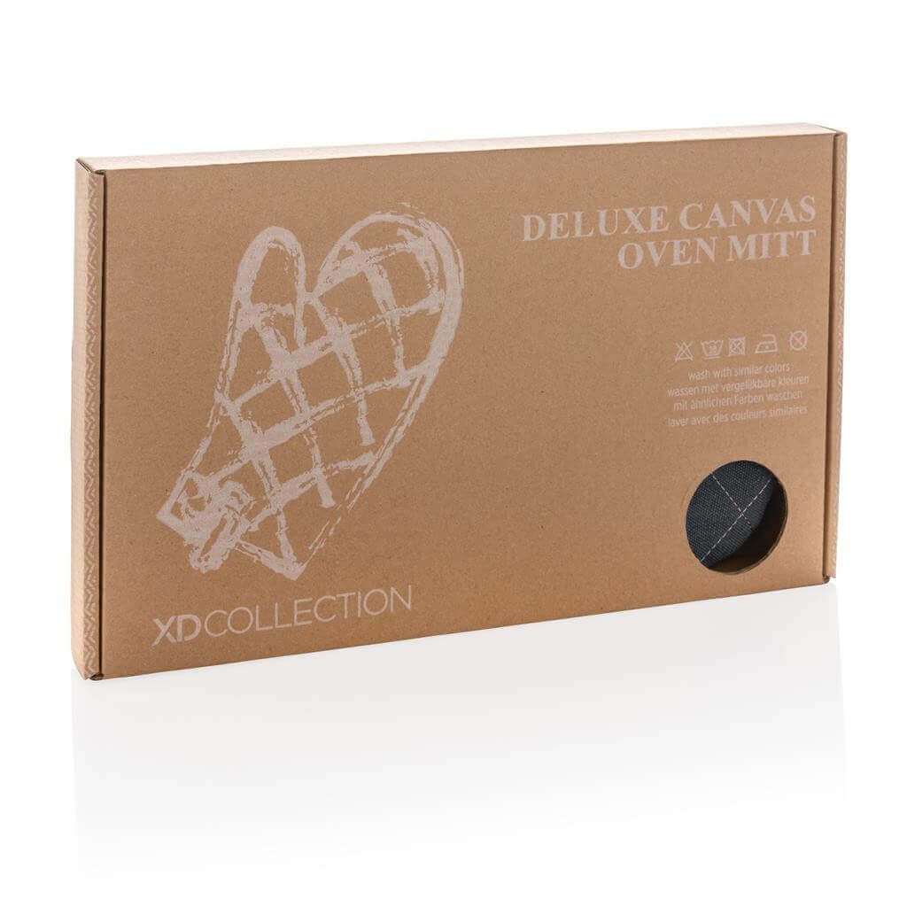 Stylová kvalitní chňapka, která přijde vhod v každé kuchyni. Vyrobená z odolného 16oz canvas s detaily z umělé kůže (PU). Baleno v kraftové dárkové krabičce. Perte na 30st. s podobnými barvami.