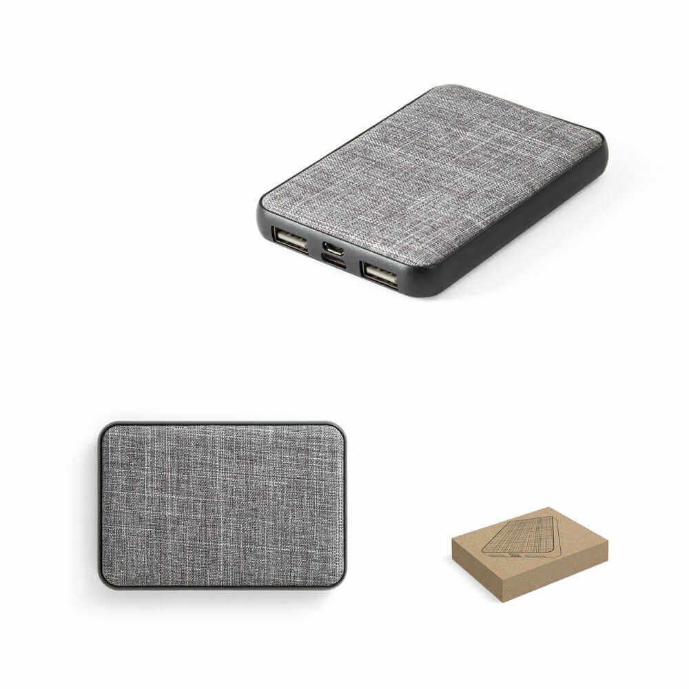 100% rPET přenosná baterie s lithiovou baterií, kapacitou 5 000 mAh a vstupem/výstupem 5V/2A. Obsahuje jeden microUSB a USB-C port a dva USB porty. Dodáváno v papírové krabičce.65 x 98 x 10 mm