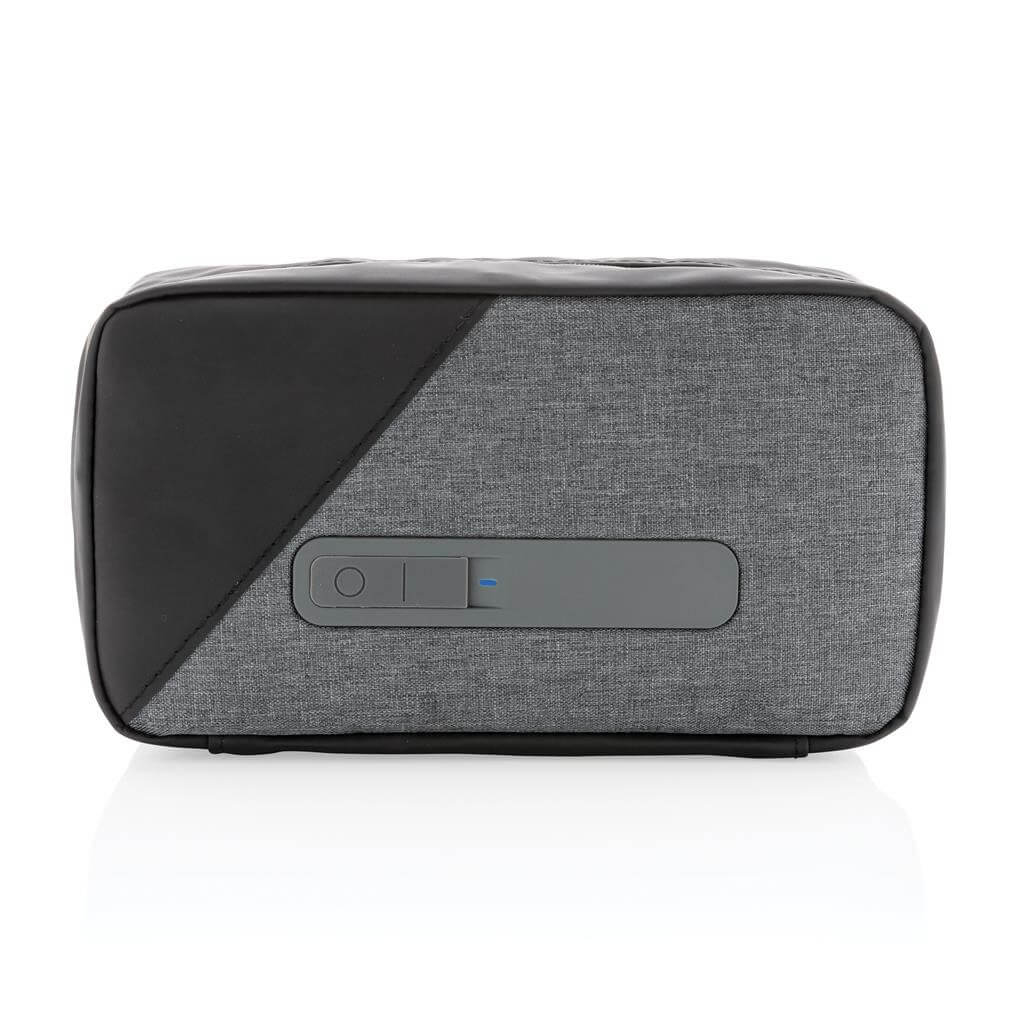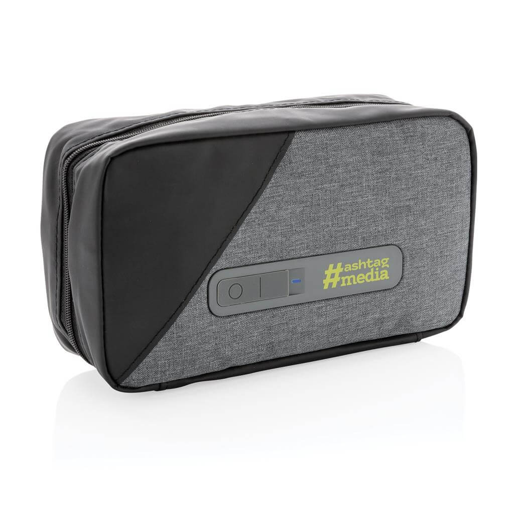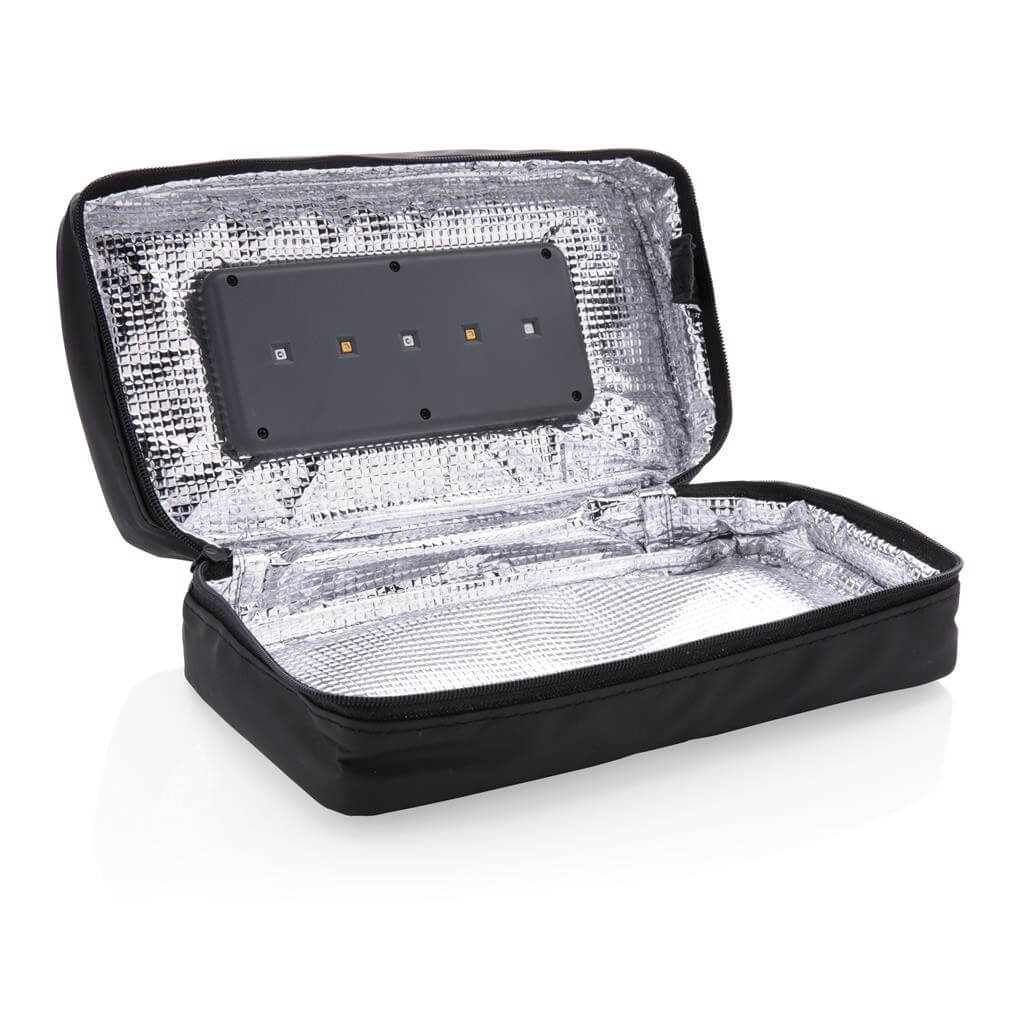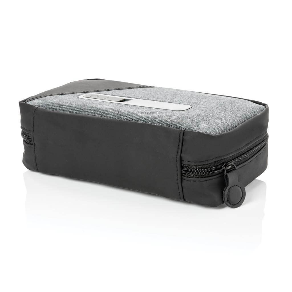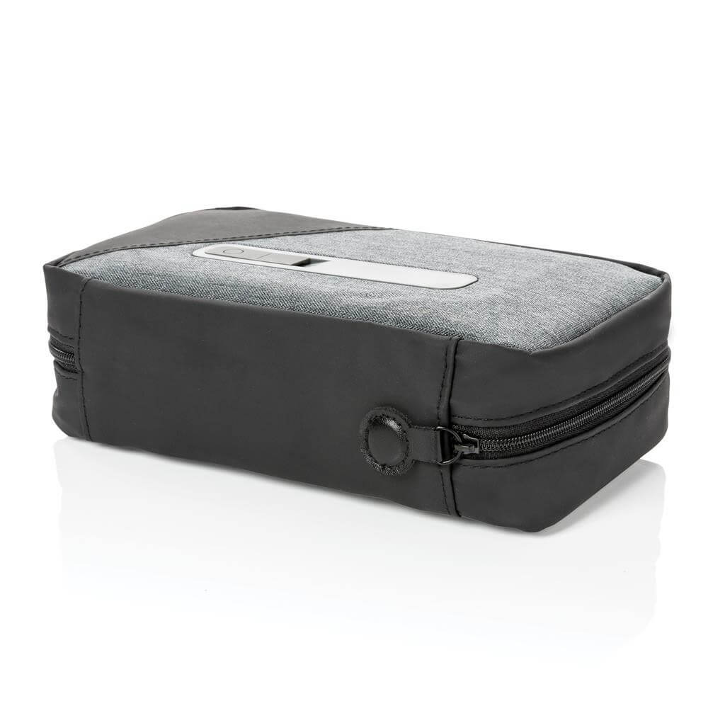 Přenosný UV-C sterilizační vak na zip pro čištění často používaných předmětů jako jsou klíče nebo telefon kdekoliv na cestách. UV-C světlo ničí až 99,9 % bakterií na vloženém předmětu. Rychlý režim trvající 5min, kompletní režim trvající 10min. 3 UV-C LED světla jsou netoxická, neobsahují žádnou rtuť a disponují funkcí automatického vypínání při otevření zipu a magnetického zapínání vaku, čímž je zabráněno vystavení uživatele gama záření. Integrovaná baterie s kapacitou 400 mAh pro používání kdekoliv na cestách. Vnější materiál 300D polyester a PU. Včetně micro USB nabíjecího kabelu z TPE (bez PVC). Vlnová délka UV-C světla: 270nm-280nm. 1 baterií typu Li-poly súčasťou balenia.