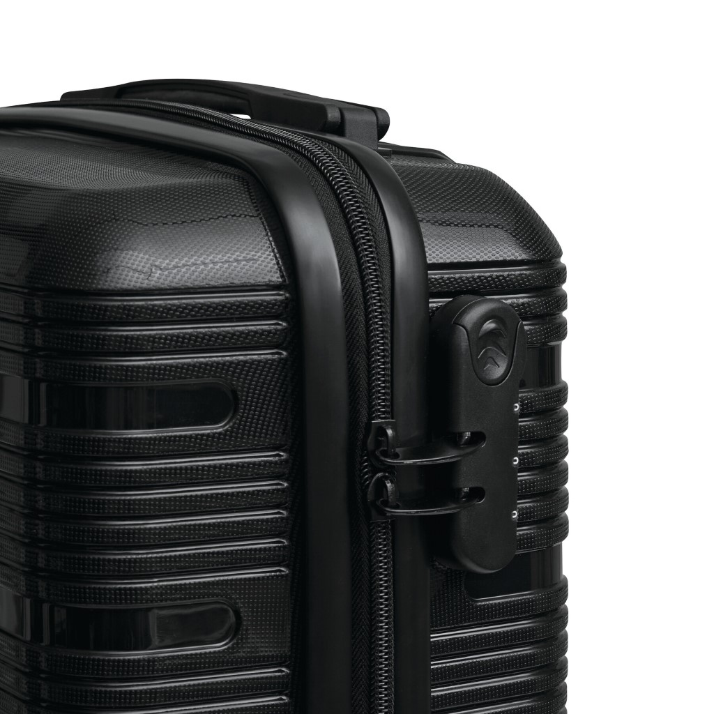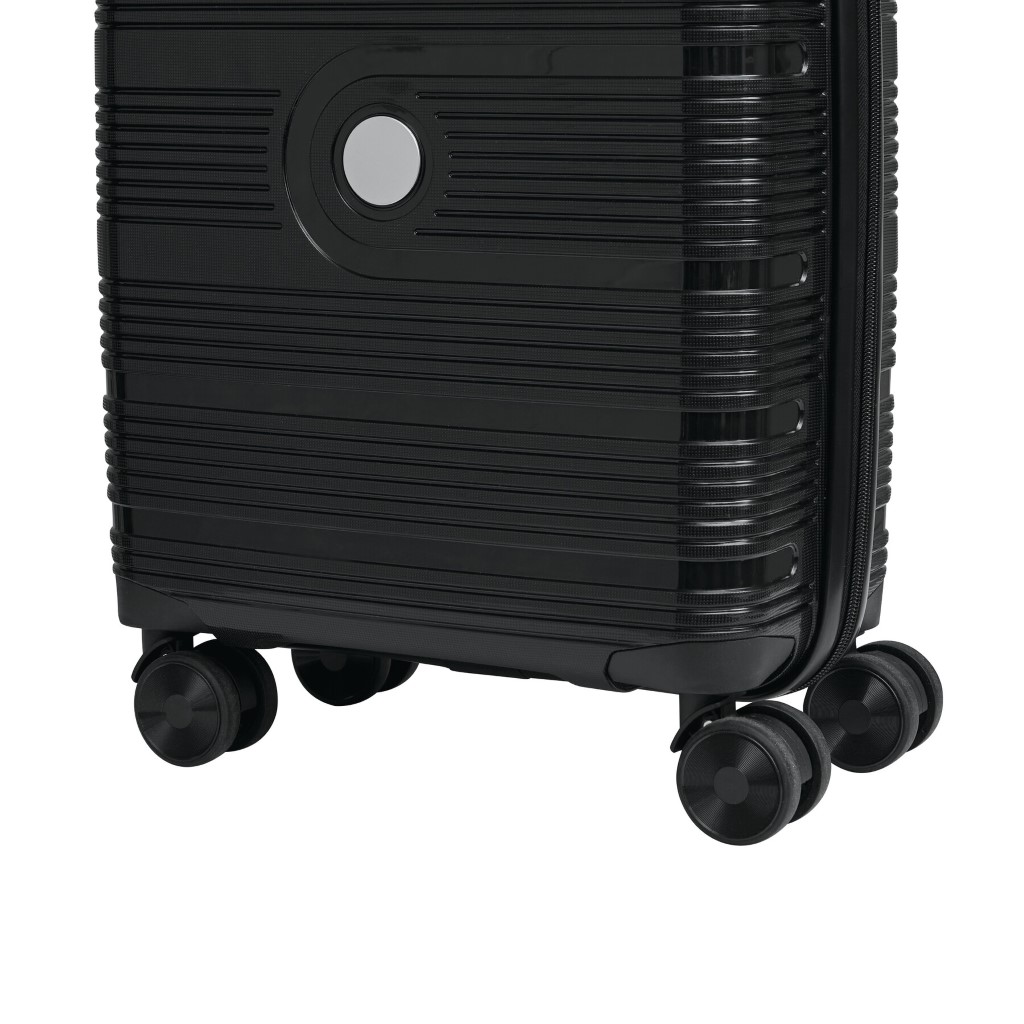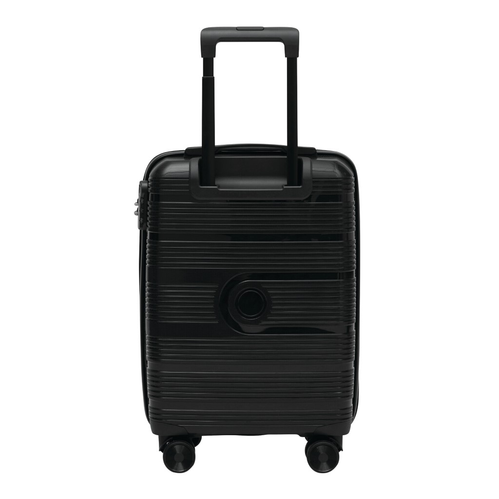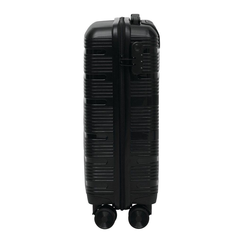 Příruční kufr na kolečkách YORK: vyroben z mimořádně odolného materiálu, balení na obou úrovních, se síťovanou kapsou na zip a elastickým balícím popruhem, uzamykatelný teleskopický systém koleček, rukojeť na přenášení, 4 hladce se pohybující dvojitá kolečka 360°, vyměnitelná kovová nálepka s logem na přední straně, kombinovaný zámek – nástupní velikost vhodná pro nízkonákladové letecké společnosti.