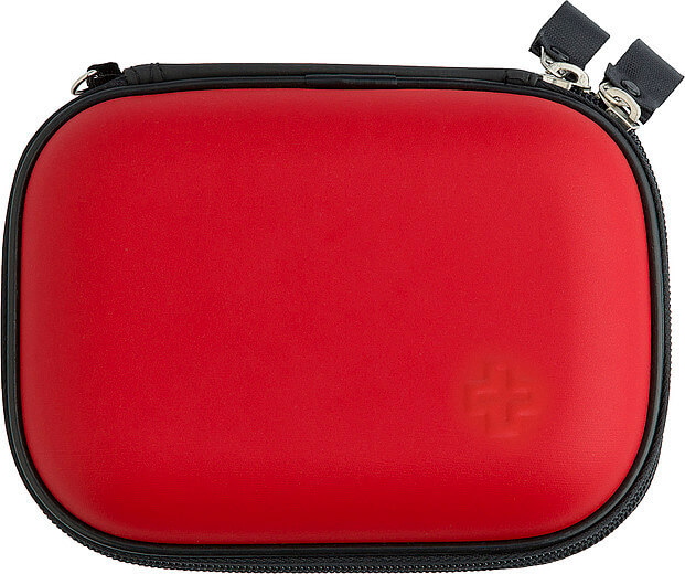 Lékárnička dodávaná v pěnovém pouzdře EVA; obsahuje sterilní netkanou podložku, jeden obvaz na roli, obvaz na trojúhelník, dva bezpečnostní špendlíky, nůžky, čtyři alkoholové vycpávky, pět adhezivních sterilních náplastí a malý svitek pásky.