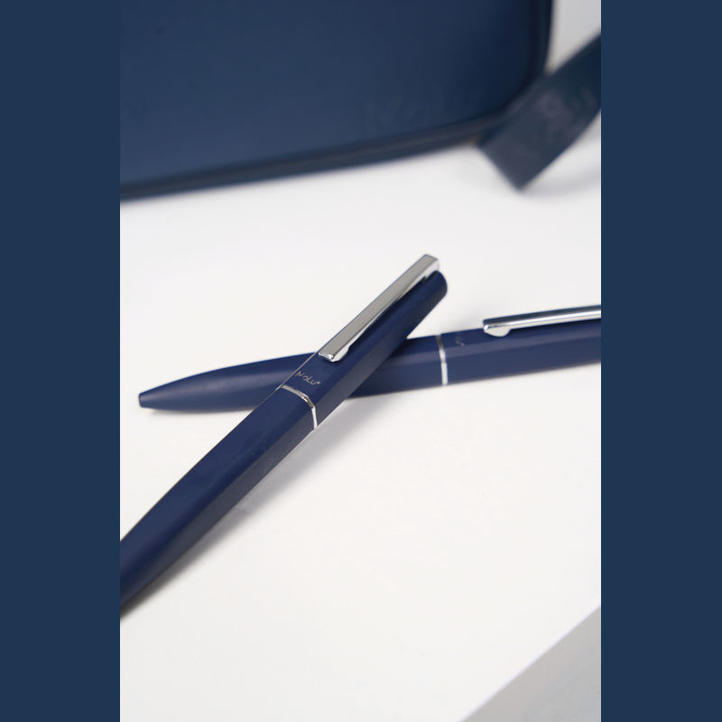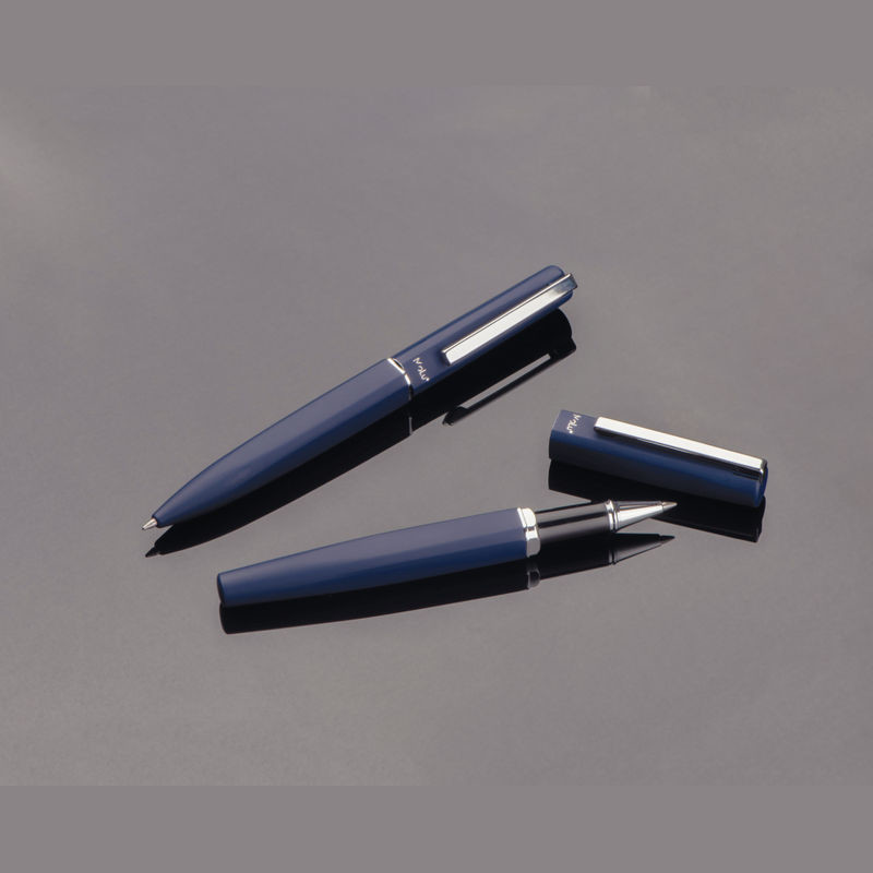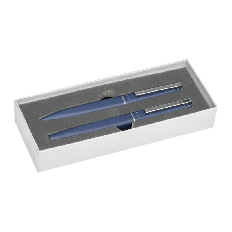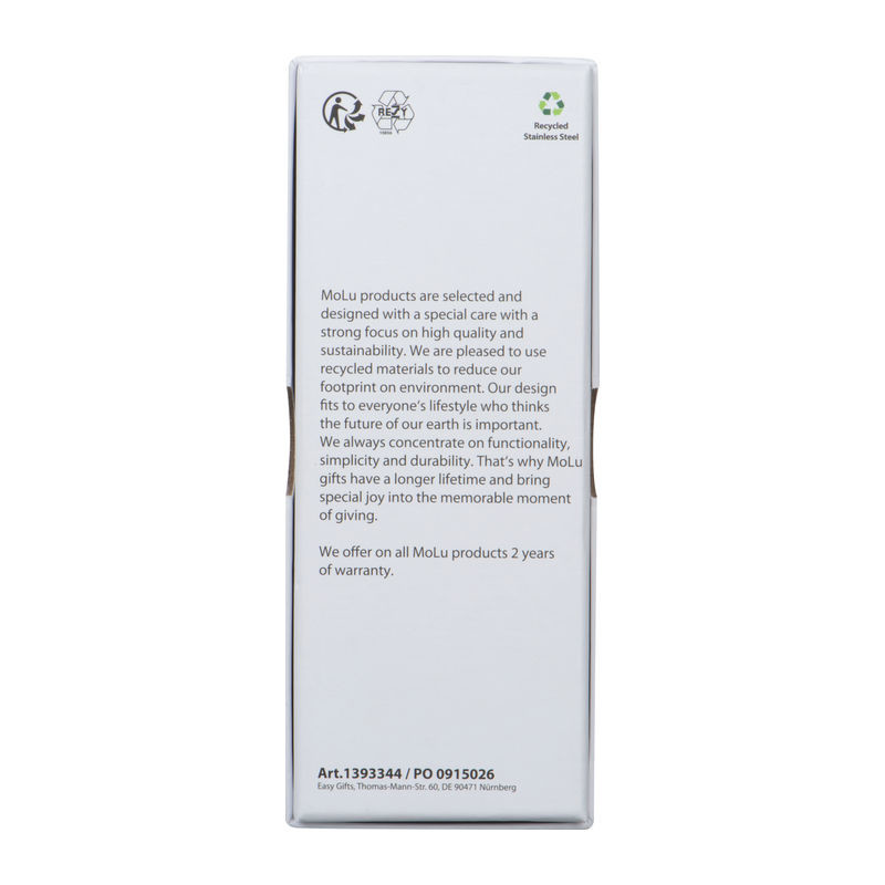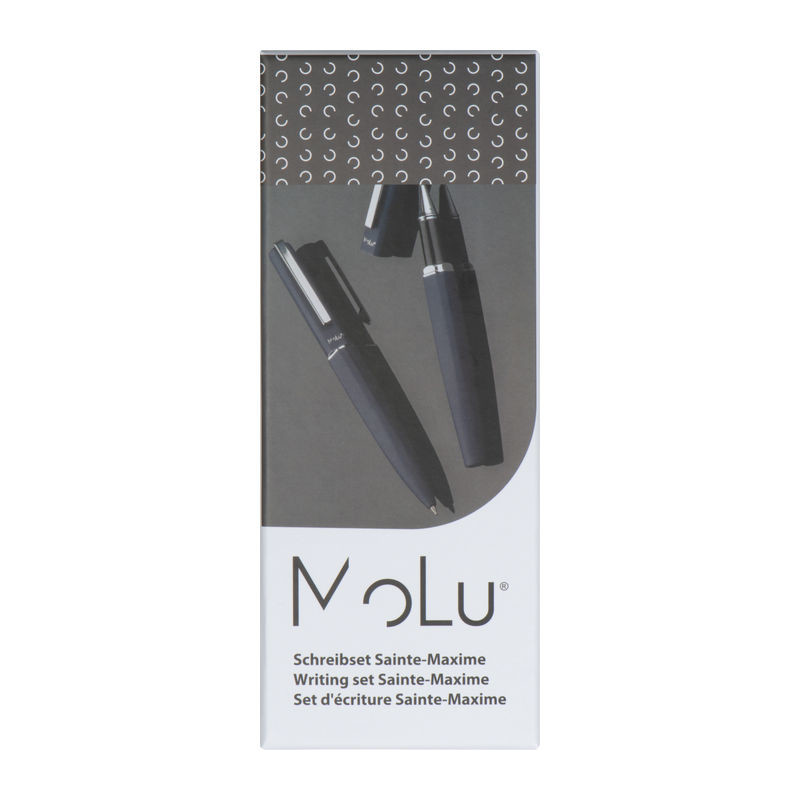 Objevte naši exkluzivní psací soupravu, sestávající z elegantního kuličkového pera a stylového rolleru. Obě psací potřeby jsou vyrobeny z recyklované nerezové oceli a mají příjemný pryžový povrch, který zajišťuje pohodlné používání. Vygravírované logo Molu na obou rtech zdůrazňuje vysoce kvalitní zpracování a exkluzivitu této soupravy.