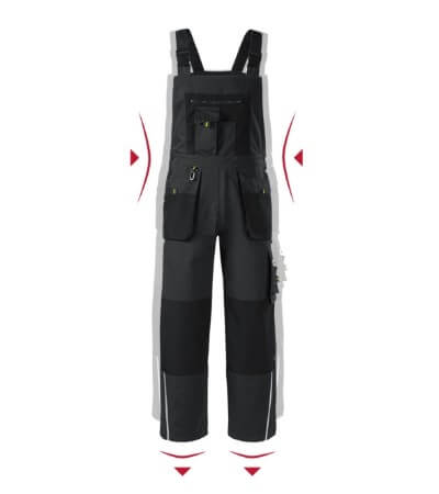 kalhoty s nastavitelnými šlemi zapínanými na plastovou sponu