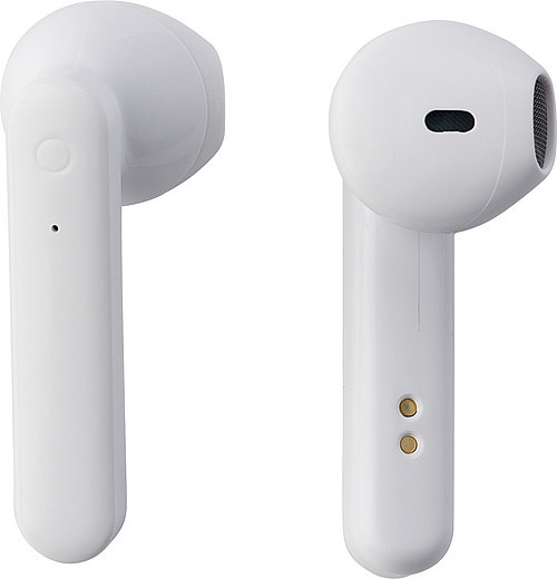 Plastová sluchátka do uší s bezdrátovou technologií Bluetooth verze 5.0. Včetně nabíjecího kabelu. Sluchátka jsou bílá, zatímco krabička je bambusová. Rozměry: 7.6 x 4.8 x 3.2 cm Kartonové množství v ks: 200 Poznámka: cena nezahrnuje recyklační poplatek.
