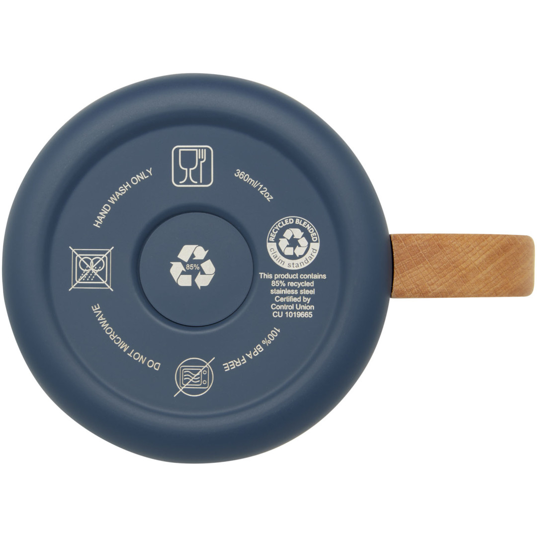 Hrnek Bjorn je vyroben z recyklované nerezové oceli s certifikací RCS a rukojeť je vyrobena ze zodpovědně získaného bukového dřeva. Měděná vakuová izolace v hrnku pomáhá udržet nápoje v ideální teplotě po dlouhou dobu. Tento hrnek je skvělou alternativou k tradičním hrnkům, navržený tak, aby zabránil přenosu tepla na vnější stranu hrnku. Testováno a schváleno podle německé legislativy pro bezpečnost potravin (LFGB) a na obsah ftalátů podle předpisů REACH. Kapacita: 360 ml. Neobsahuje BPA.