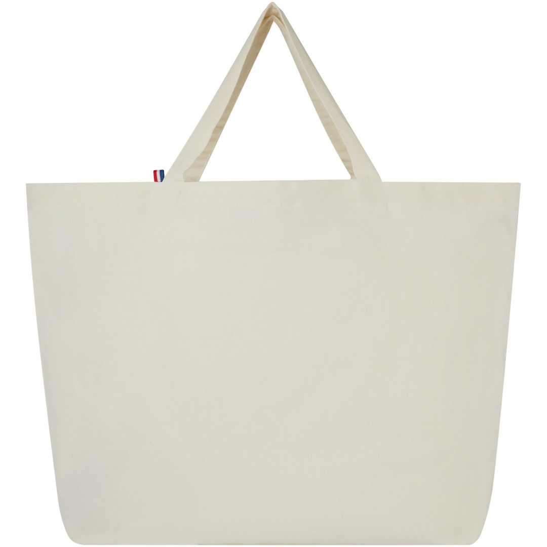 Tato taška je konstruována tak, aby odolala každodennímu používání a je vhodná na přenášení těžkých knih nebo potravin. Je vyrobena ze 100% recyklovaných materiálů, což z ní činí udržitelnější volbu. Metody tisku dostupné pro tuto tašku jsou certifikovány GRS, což zajišťuje transparentnost a certifikaci dodavatelského řetězce. Směs recyklované bavlny/polyesteru o gramáži 200 g/m² zajišťuje odolnost a spolehlivost a dodává tašce odolnost až do hmotnosti 14 kg.