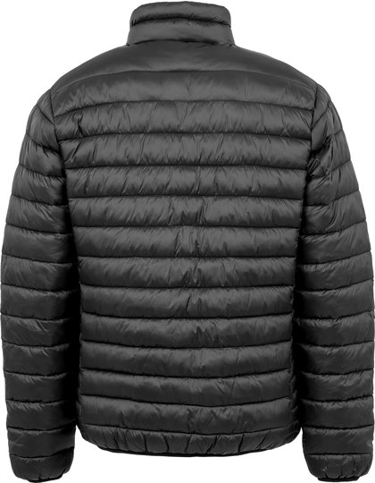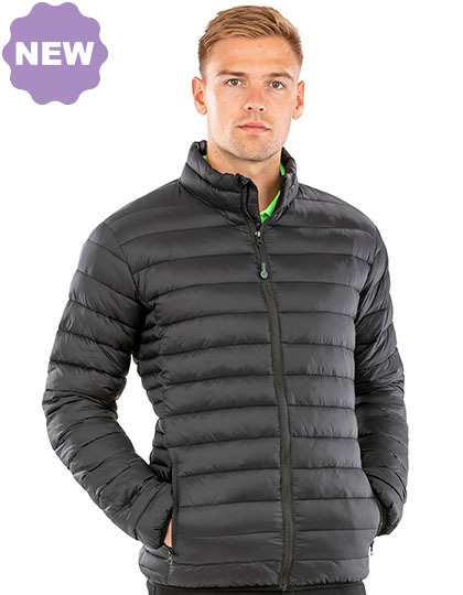 Vnější strana + podšívka: 100 % recyklovaný nylon, polstrování: 100 % recyklovaný polyester (260 g/m²). Lehká, voděodolná, prodyšná, odolná proti větru. Teplá polstrovaná bunda s kontrastními vodorovnými díly v podpaží. Odolný límec na zip s ochranou brady a jezdcem. Černá elastická černě lemovaná manžeta a lem. Polyesterová vata měkká na dotyk. Kapsy na zip. Vnitřní kapsy. Závěsné poutko. Módní prošívaný design. Recyklovaný materiál s použitím ekologických materiálů z recyklovaných plastových lahví a průmyslového odpadu, který je udržitelnou alternativou běžných přízí. Vyrobeno z 18 (1litrových) plastových lahví. Na konci životnosti recyklovatelné. Bez štítku.