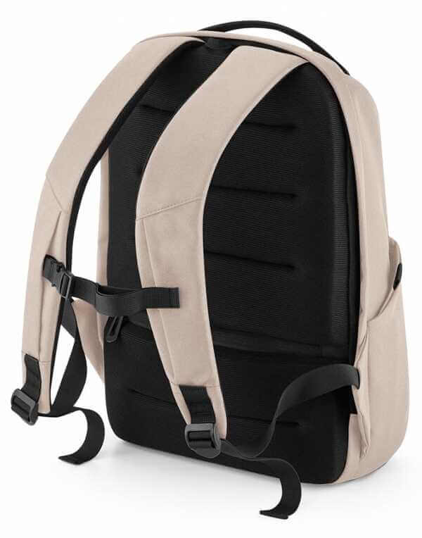 100% polyester (recyklovaný, 600D), bez PVC a odolná vodoodpudivá úprava, recyklovaný polyester od cca. 7 lahví, ramenní popruhy s plně nastavitelným hrudním popruhem, prodyšný polstrovaný zadní panel ze síťoviny s diskrétní kapsou na zip, včetně podšívky, s blokováním RFID, hlavní přihrádka se skrytým přístupem, polstrovaná přihrádka na notebook, kompatibilní až do 15,6," více vnitřních kapes, dvě vnější kapsy na láhev, vytáhněte bezpečnostní lano „proti uchopení“ a uzamykatelné stahováky zipů, štítek TearAway pro snadnou změnu značky, kapacita: 17 litrů, rozměry: 30x45x17 cm, max. plocha pro výšivku: 18 obr. plocha: 17x28 cm