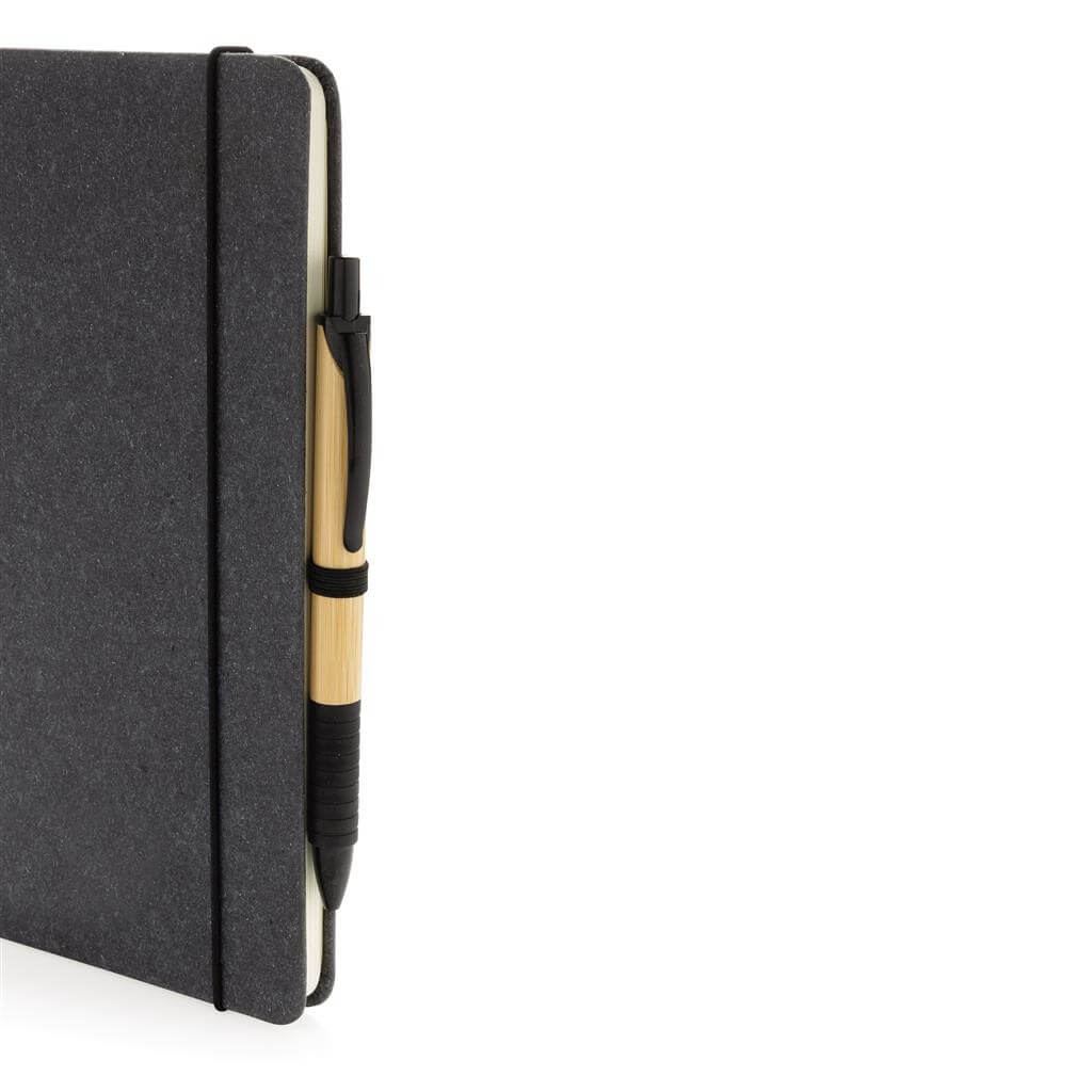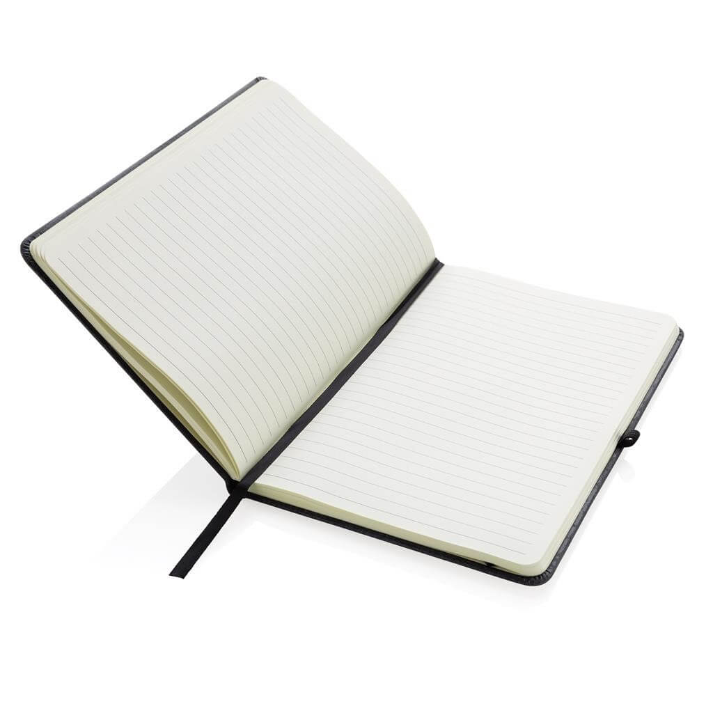 Zapište si všechny své poznámky a kreativní nápady do poznámek z recyklované kůže v pevné vazbě formátu A5. Stylový a s krásným povrchem. Zápisník obsahuje 80 listů/160 stran bílého linkovaného recyklovaného papíru s gramáží 70 g/m2, svislou gumu a poutko na pero.