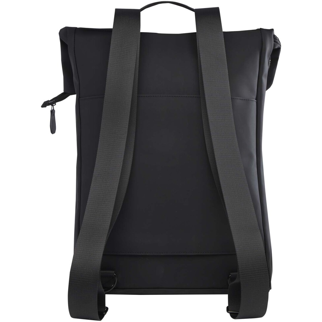 Rolovací batoh Turner je vyroben z 51 % z recyklovaného plastu s certifikací GRS a podšívka je vyrobena ze 100 % z materiálu RPET s certifikací GRS. Batoh má polstrovanou přihrádku na 15,6″ notebook, polstrovanou přihrádku na tablet, vnitřní poutko na láhev s vodou a kapsu na zip na menší předměty. Hlavní přihrádka je navržena s rolovacím zavíráním, které lze bezpečně upevnit přezkou. Popruhem na zavazadla na zadní straně ho navíc snadno připevníte ke kufru na kolečkách. Díky tomu je z něj spolehlivý společník na cesty. Objemová kapacita: 12 litrů.