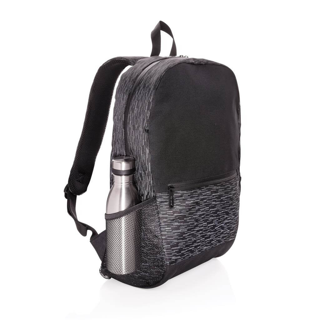 Buďte zaručeně vidět i ve tmě díky reflexnímu batohu vyrobeného ze 100 % recyklovaných materiálů s vystopovatelnou složku AWARE™. AWARE™ využívá moderní možnosti skenování a technologie blockchain, díky čemuž lze s jistotou garantovat recyklovaný původ použitého materiálu a reálnou úsporu vody. Na výrobu tohoto produktu bylo využito 16 PET lahví a bylo uspořeno 8 litrů vody. Unikátní celoplošný reflexní potisk, hlavní oddíl s vlastním prostorem na až 15,6" notebook, přední kapsa na zip a 2 síťové kapsy. Bez PVC.