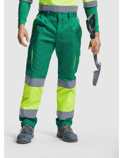 Dlouhé kalhoty s podšívkou, reflexní s více kapsami | Kombinace ve dvou barvách a s reflexními popruhy | Kontrastní fluorescenční detaily na kapsách | Flísová podšívka | Nastavitelný elastický pas vzadu | Dvojitá přední kapsa | Dvě zadní kapsy s klopou a zapínáním na suchý zip | Dvě boční kapsy s klopou a zapínáním na suchý zip | Certifikace CE podle norem: EN ISO 13688:2013 a EN ISO 20471:2013/A1:2016, Třída I: 55221 – 55223 – 52221 – 23221.