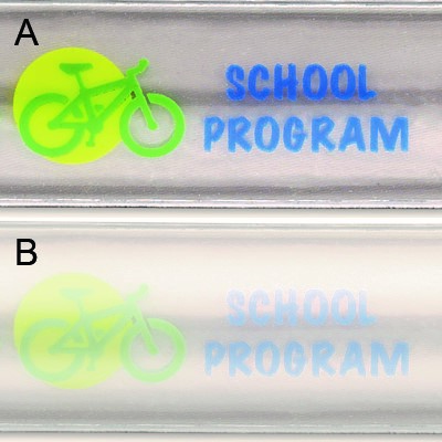Reflexní klíčenka vlastního tvaru (ne pro bezpečnostní použití) s barevným PVC uvnitř a stříbrnou nebo žlutou reflexní fólií na vnější straně. Max. rozměr: 6x6cm. V ceně je 1-barevný potisk. Zvolte tisk loga na vnější stranu položky pro lepší viditelnost vašeho loga (A), případně můžete tisknout na vnitřní stranu pro větší reflexní plochu (B).