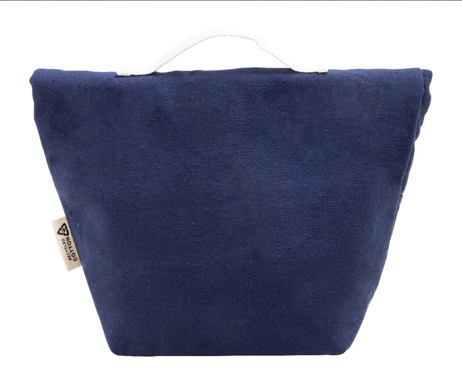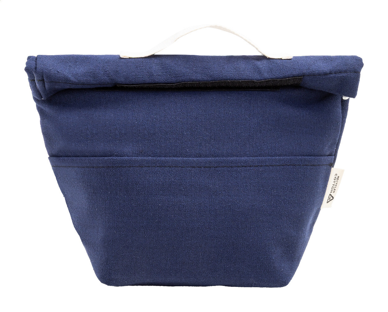Chladící taška z recyklovaného plátna s rolovacím vrchem, přední kapsou, hliníkovou výplní a zapínáním na suchý zip. 70 % recyklované bavlny a 30 % polyesteru RPET. S výrazným štítkem z recyklované bavlny. New. Go Green. Nosnost tašky: 5 kg. Objem tašky: 7 l