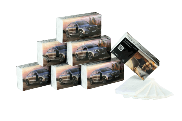 Papírové kapesníčky v transparentní fólii Classic. Potisk je realizován jako digitální plnobarevný na celou plochu balíčku!