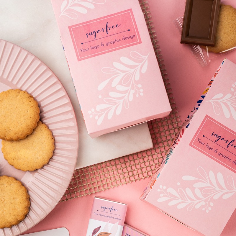 Postarali jsme se o delikátní chuť a čisté složení a jeho balení si můžete přizpůsobit. Sušenky zabalíme do fólie. Nabízíme k výběru monofólii, která je 100% recyklovatelná a kompostovatelnou fólii. Fólii potiskneme metodou flexotisku tak, aby bylo vidět Vaše logo, reklamní slogan, grafiku.
