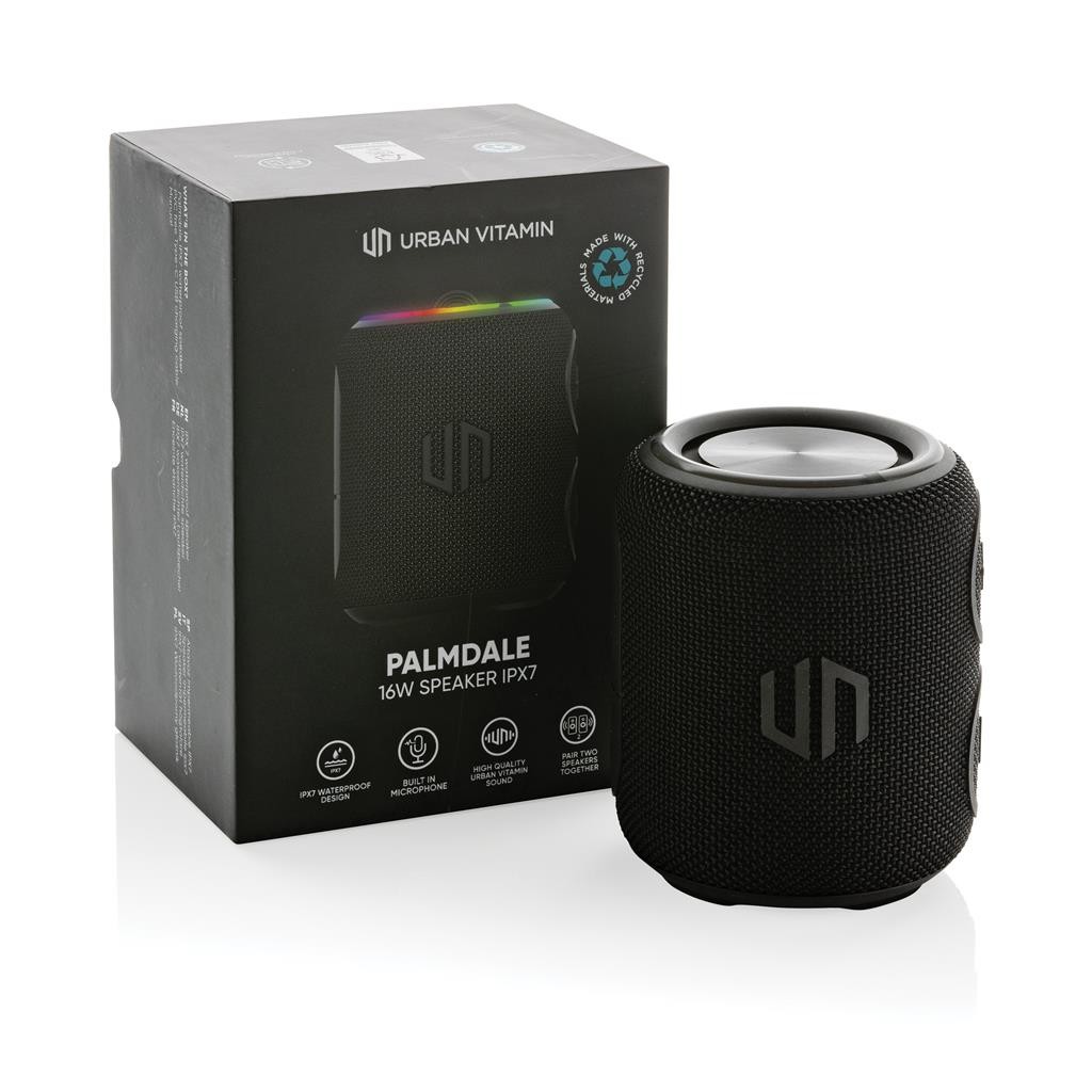 Voděodolný IPX7 bezdrátový reproduktor s robustním výkonem 16W. Praktické poutko a odolné provedení. Možnost spárování dvou reproduktorů pro stereo poslech. Poslech po dobu až 10 hodin na jedno plné nabití. Dvojitý subwoofer pro kvalitnější basový zážitek. Vyrobeno z RCS recyklovaného ABS a PET plastu. RCS (Recycled Claim Standard) je globální standard, který umožňuje ověřit použití recyklovaného materiálu v produktu napříč celým dodavatelským řetězcem. Celkový podíl recyklátu dle váhy produktu: 35 %. Produkt i příslušenství bez PVC. Baleno v dárkovém balení Urban Vitamin s minimálním obsahem plastů. 1 baterií typu 18650 súčasťou balenia.