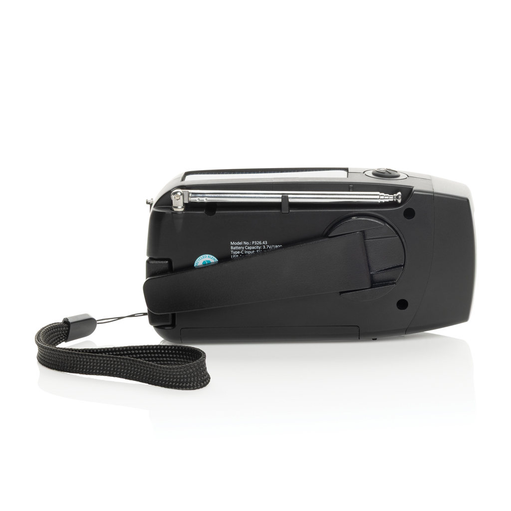 Buďte připraveni na jakoukoli situaci s RescueWave, všestranným nouzovým rádiem navrženým tak, aby vás udrželo ve spojení a nabité. Nabízí AM/FM rádio, solární panel, integrované 1W svítidlo, USB výstup a USB-C vstup. S integrovanou baterií o kapacitě 1800mAh může RescueWave nabít váš telefon a poskytnout potřebnou energii. Ruční pohon poskytuje spolehlivou funkčnost – pouhá 1 minuta točení umožňuje 5 minut rádiového vysílání nebo 30 minut svícení. Rádio vydrží až 15 hodin vysílání nebo 8 hodin svícení na plné nabití. Vyrobeno z recyklovaných materiálů certifikovaných podle RCS (Recycled Claim Standard). Celkový podíl recyklovaného obsahu: 38 % podle celkové hmotnosti produktu. Produkt i příslušenství neobsahují PVC a jsou baleny v FSC® obalu.