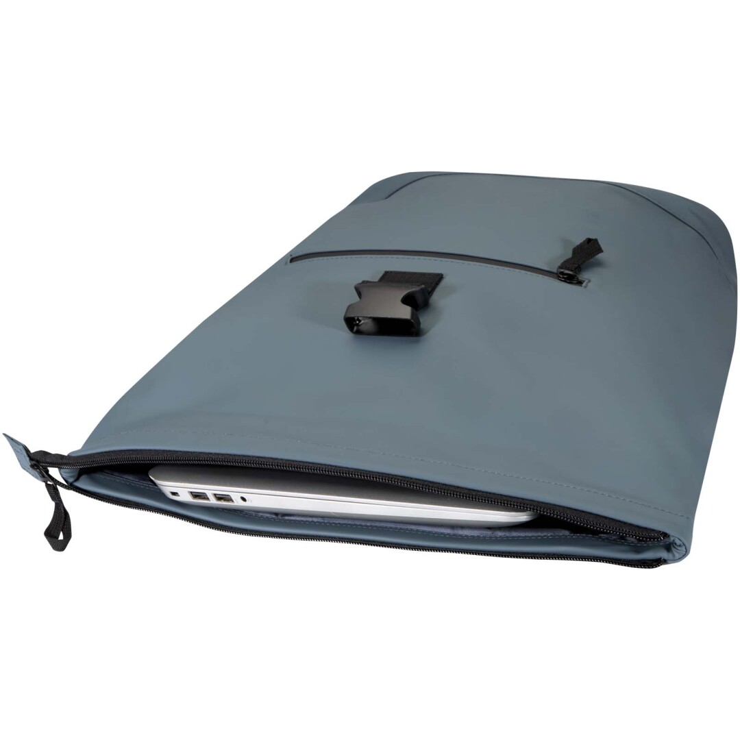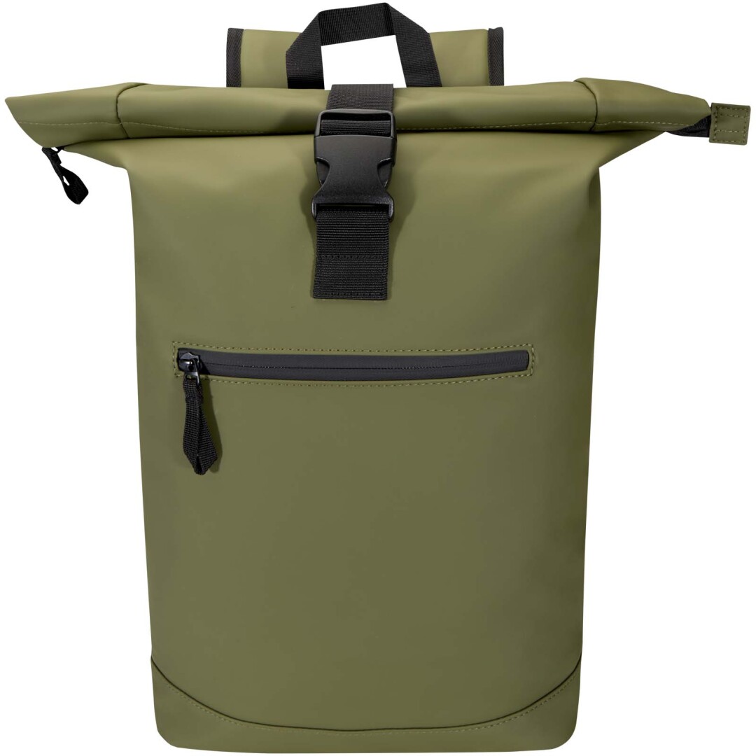 Tento batoh s rolovací střechou je vyroben z prvotřídní recyklované PU kůže s barevně sladěnou podšívkou z RPET a spojuje moderní styl s dlouhou životností. Voděodolná povrchová úprava chrání vaše nezbytné předměty a rolovací zapínání nabízí flexibilní úložný prostor, ideální pro dojíždění, cestování nebo do posilovny. Uvnitř je polstrovaná přihrádka na notebooky do úhlopříčky 15,6″ a další kapsa na zip vám umožní uspořádat si techniku a každodenní nezbytnosti. Na vnější straně zajišťuje bezpečný přístup přední kapsa na zip s nepromokavým zipem, zatímco polstrované, nastavitelné ramenní popruhy a prodyšný zádový panel zajišťují celodenní pohodlí.