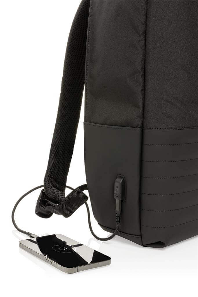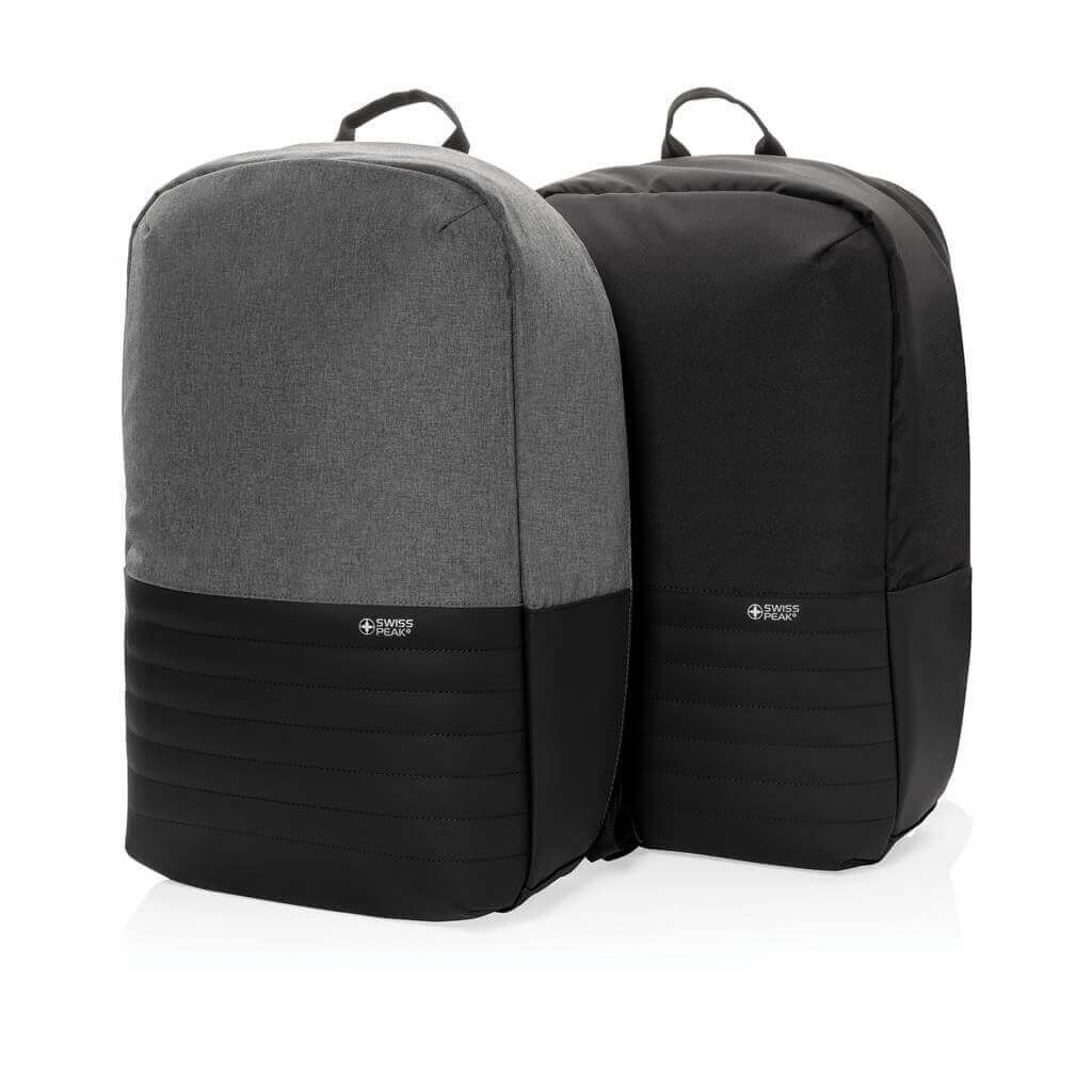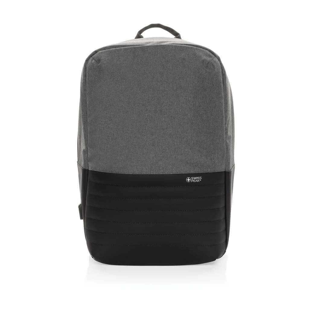 Batoh Swiss Peak s nedobytným zapínáním skrytým v zadní části zajistí bezpečnost všech uložených cenností. Vnitřní část obsahuje oddíl na 15,6" notebook a tablet, RFID kapsy pro uložení dokladů. Integrovaný USB port pro snadné nabíjení telefonu z powerbanky, kterou lze uložit uvnitř batohu. Skrytá kapsa na zadní části. Vyrobeno z recyklovaného polyesteru AWARE™. Na výrobu bylo využito 20,8 500ml PET lahví a bylo uspořeno 12,4 litrů vody. Z výtěžku každého prodaného kusu je navíc přispěno 2 % na podporu iniciativy Water.org.