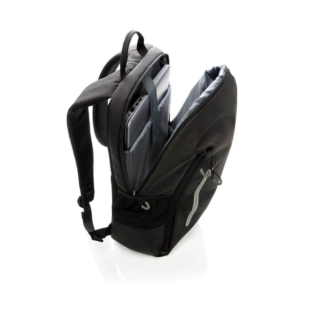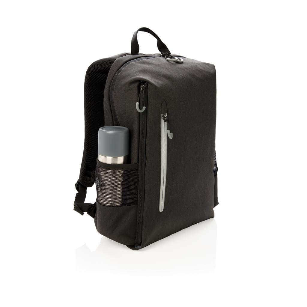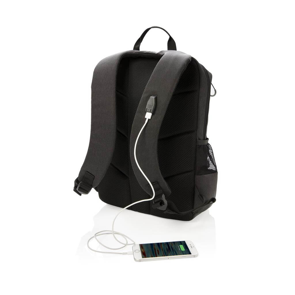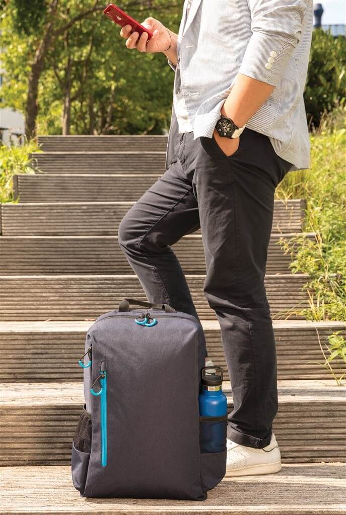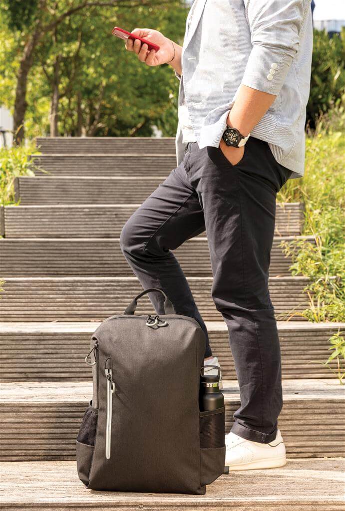 Jednoduchý, praktický a odolný každodenní batoh s dvěma postranními kapsami pro vaši láhev či složený deštník. Příhodný USB výstup umístěný na popruhu. Polstrovaný oddíl na 15,6" notebook a spousta dalších využitelných kapes včetně těch s RFID ochranou. PVC free. Ochranný vzor® PMS color 1: Black, PMS color 2: Cool Grey 6 PMS color 1: Cool Grey 7, PMS color 2: 1655 PMS color 1: 539, PMS color 2: 3005