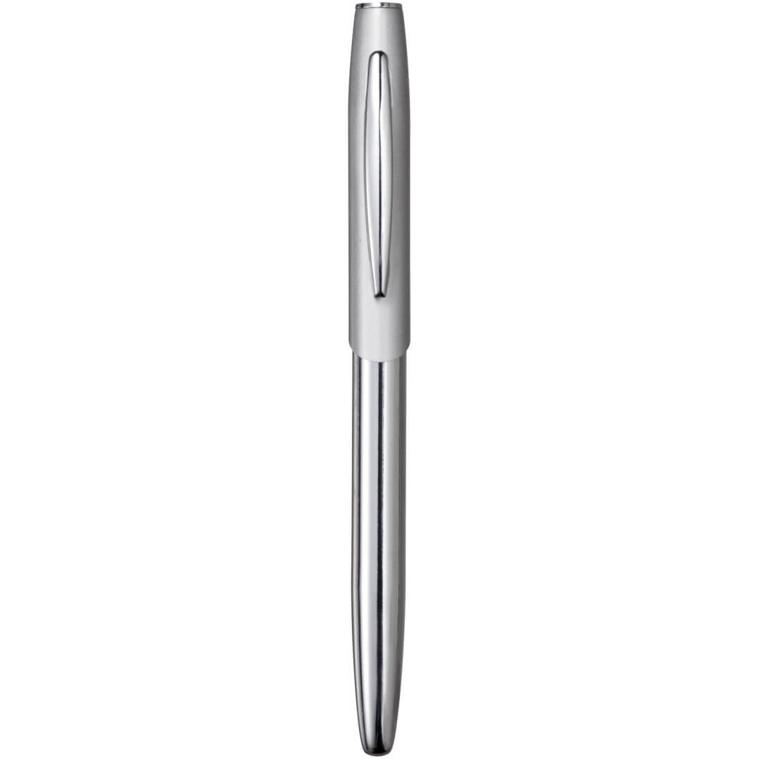 Vytříbený tvar rolleru s matným povrchem horního dílu a lesklým chromovaným povrchem spodního dílu, se shodnými akcenty chromovaných doplňků. Včetně sametového váčku. Baleno v dárkové kazetě Avenue (vel.: 16 x 2,5 x 1,5cm). Kov.