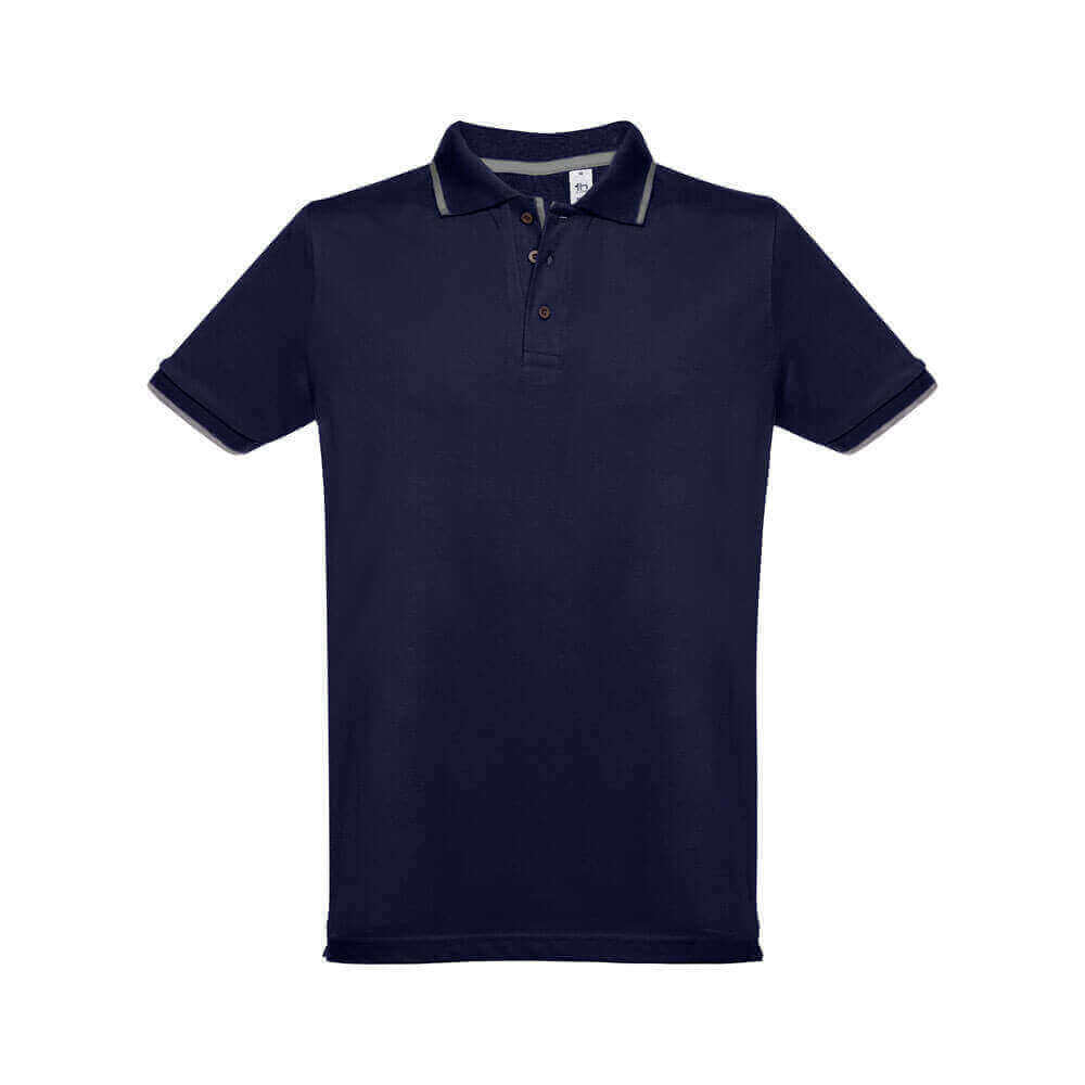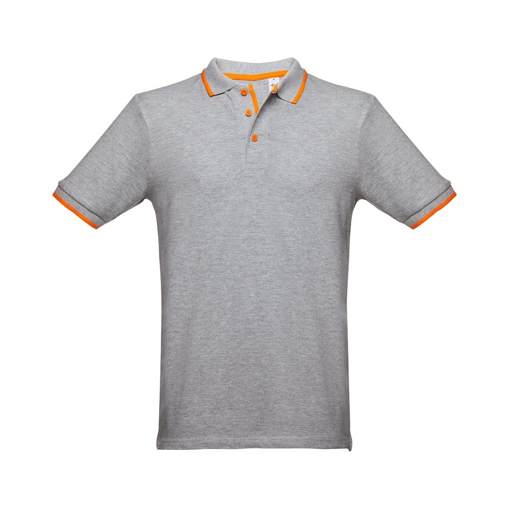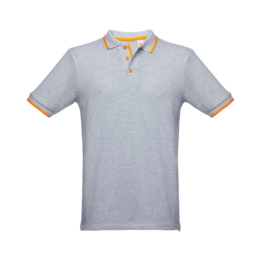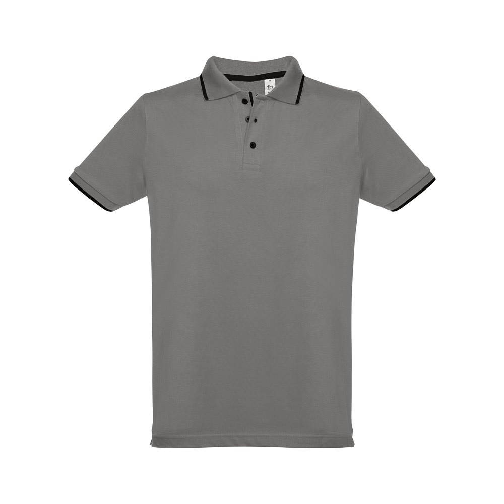 Pánská přiléhavá polokošile ze 100% bavlněného piké (195 g/m²) přiléhavého střihu s bočními rozparky. Barva 83: 85% bavlna a 15% viskóza. Krátký rukáv. Žebrovaný límec a rukávy. Dvoubarevný kontrast na límci, léze a rukávech. Vyztužená léga. Náhradní knoflík ve vnitřním švu.