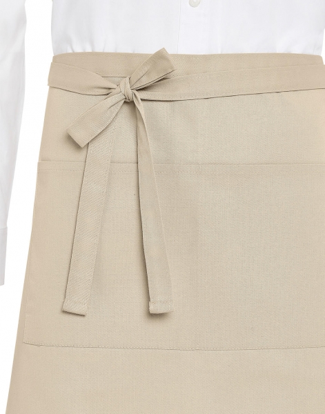 -205 g/m² -65 % polyester (recyklovaný), 35 % bavlna (recyklovaná) -stálá barva -snadná údržba -reaktivní barvení -průchozí robustní vázání zástěry v pase -velká náplastová kapsa se 2 přihrádkami (40 x 20 cm) -střední délka zástěry - rozměry: 100 x 78 cm - možnost praní na 60 °C.