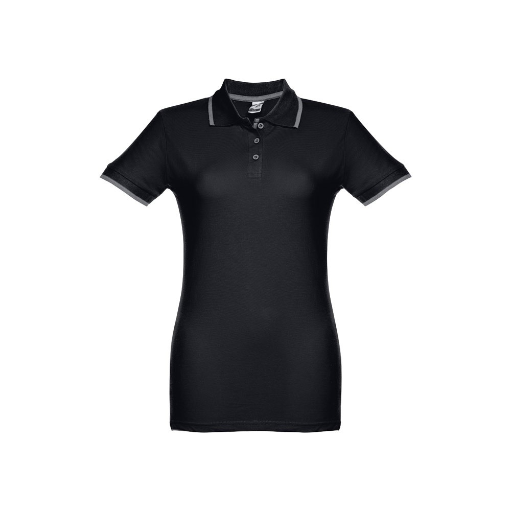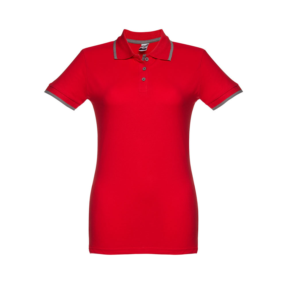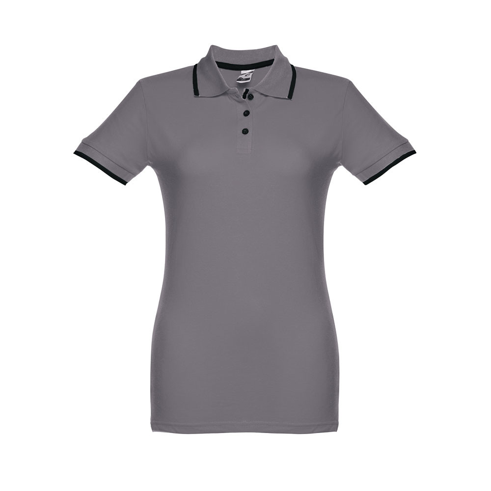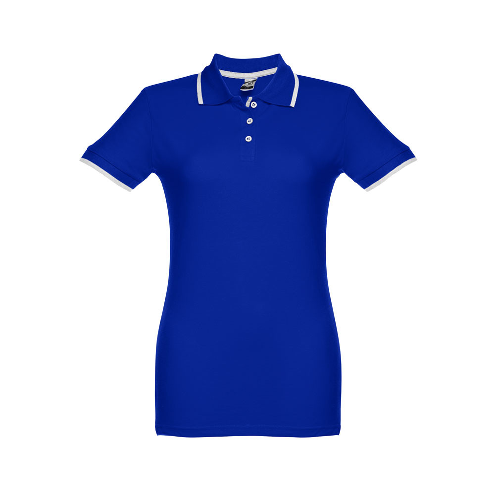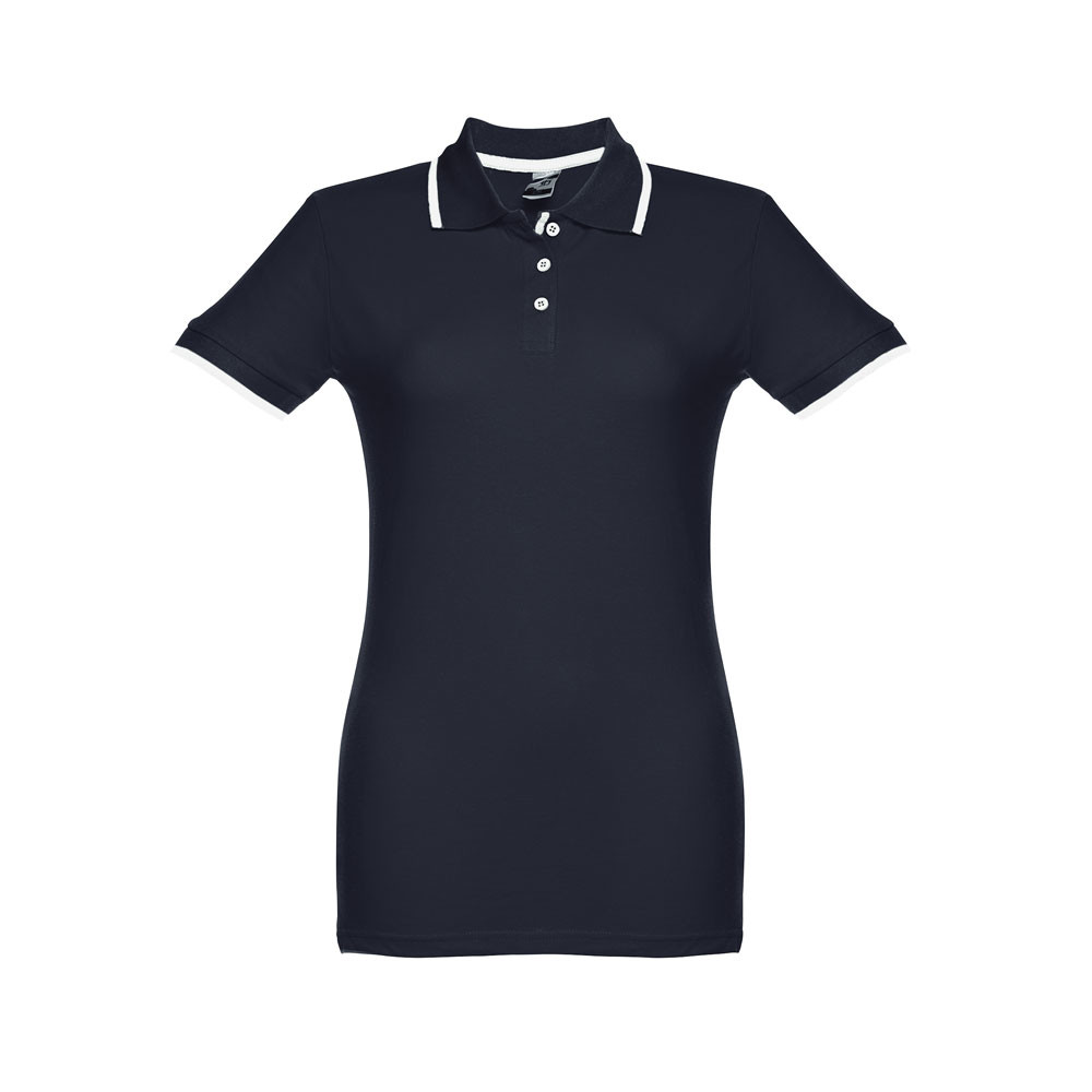 Dámská přiléhavá polokošile ze 100% bavlněného piké (195 g/m²) s bočními rozparky. Barva 83: 85% bavlna a 15% viskóza. Krátký rukáv. Žebrovaný límec a rukávy. Dvoubarevný kontrast na límci, léze a rukávech. Vyztužená léga. Náhradní knoflík ve vnitřním švu.