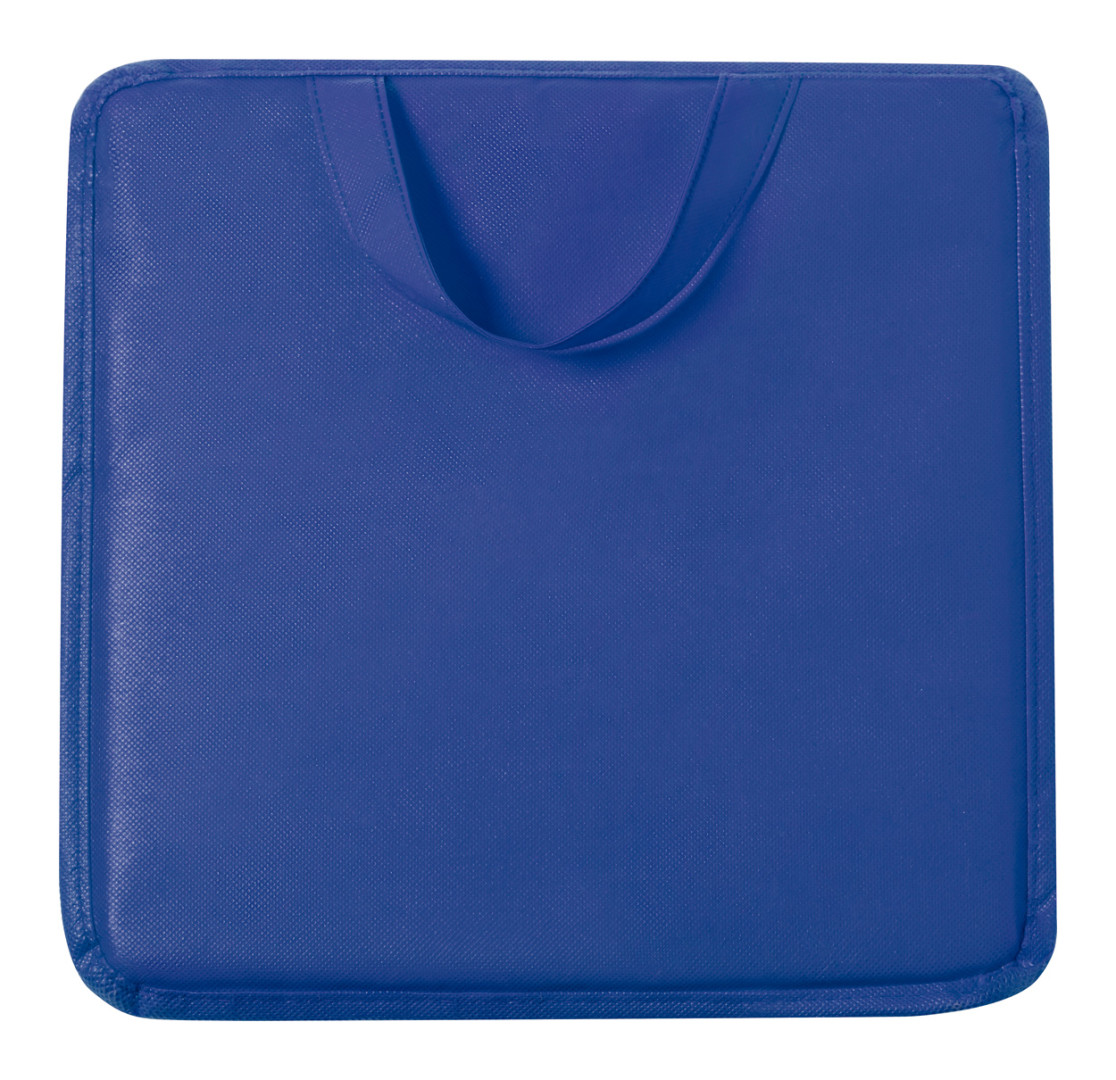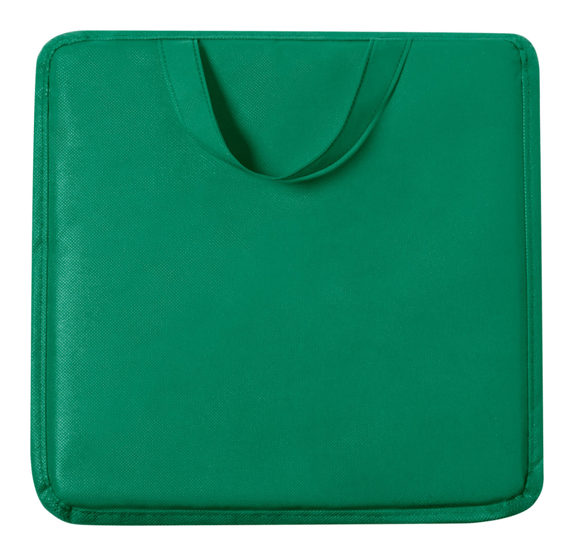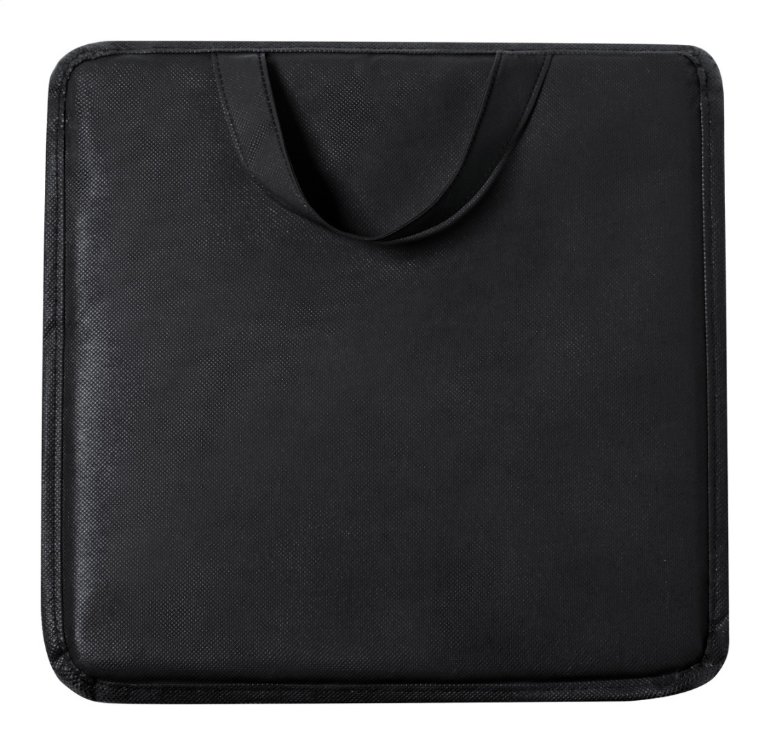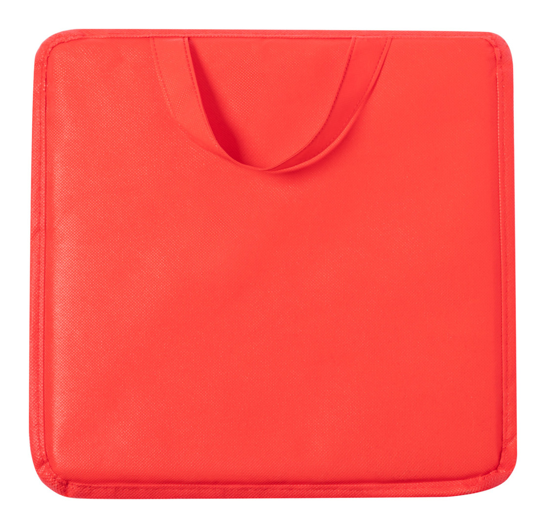Polštářek na sezení z netkané txtilie s uchem a kapsou.