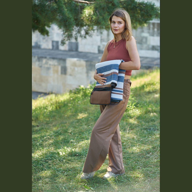 Piknikova nebo plážová deka vyrobena z materiálu RPET. Tato deka je nejen ekologická, ale také velmi praktická. Má překlápěcí chlopeň se zapínáním na suchý zip, což umožňuje snadné složení a přenášení. Další kapsa na zip poskytuje prostor pro drobnosti, jako jsou klíče, telefon nebo sluneční brýle. Vodotěsná spodní strana chrání před vlhkostí.