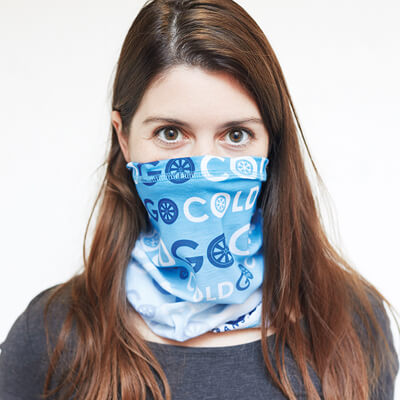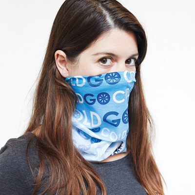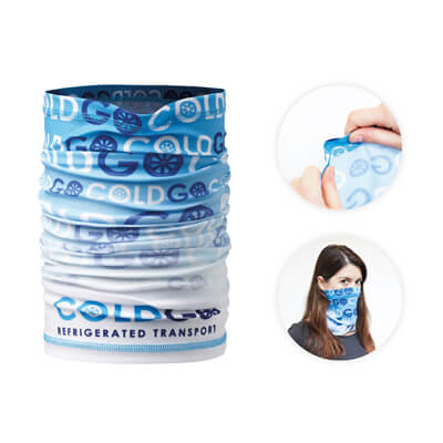 RPET Multifunkční šátek s klipem na nos, s potiskem 1 strany. Cena zahrnuje sublimační potisk šátku na jedné straně. Šátek můžeme potisknout 1 až 3 sólovými barvami nebo plnobarevně.