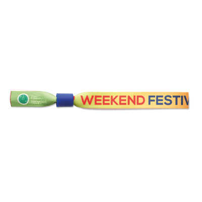 Plnobarevný náramek vyrobený ze 100% recyklovaného PET (RPET) s jednorázovým bezpečnostním uzávěrem.