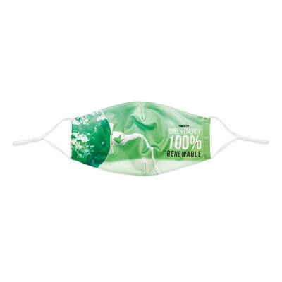 Jedinečná opakovaně použitelná rouška vyrobená z bavlněné vnitřní vrstvy a vnější vrstvy z recyklovaného PET s černými nebo bílými nastavitelnými elastickými poutky na uši. Baleno v opakovaně použitelném sáčku (CPE).