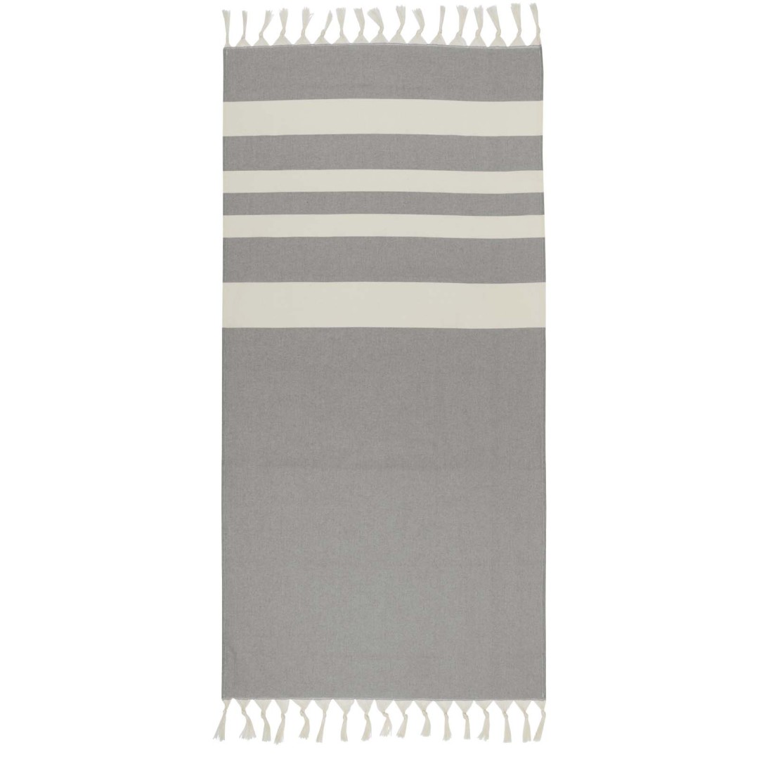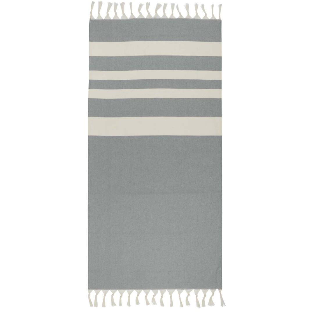 Ručník do orientálních lázní Anders poskytuje luxus a pohodlí díky velkorysým rozměrům (147 × 75,5 cm), které zajišťují dostatečné pokrytí, ať už ležíte u bazénu nebo si užíváte den na pláži. Ručník s elegantními střapci na obou koncích je vyroben z 30 % bavlny, 35 % recyklované bavlny s certifikací GRS a 35 % recyklovaného polyesteru s certifikací GRS, 180 g/m².
