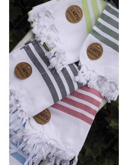 Vyrobeno ze 100% bavlny 240 g/m² | Lze složit do velmi kompaktního balení | Hamamety Hamamzz jsou tradičně tkané v Turecku | Střapce jsou zkroucené a ručně vázané | Jsou možné malé chyby, které patří k produktu a mohou se lišit podle barvy a hmotnosti.