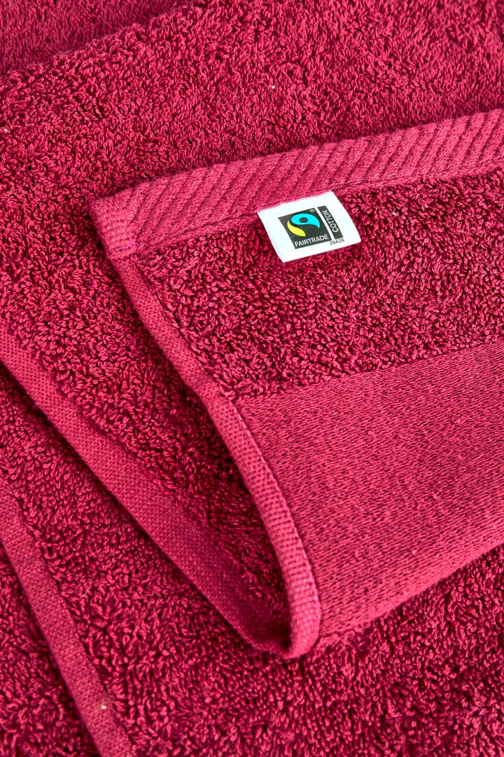 Bavlna s certifikací Fairtrade | Organická bavlna | Příjemně měkký na dotek | Skvělá absorpce vlhkosti | Štítek Fairtrade pod poutkem ručníku, ve středu krátkého okraje | 8 cm obruba | Diagonálně pruhovaný lem