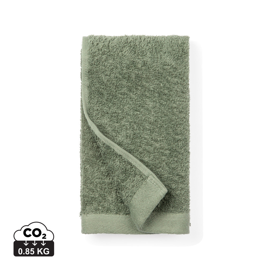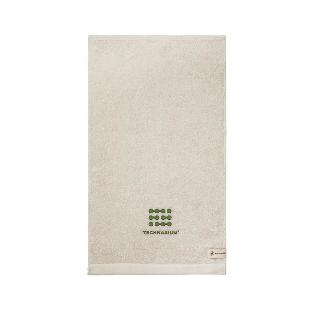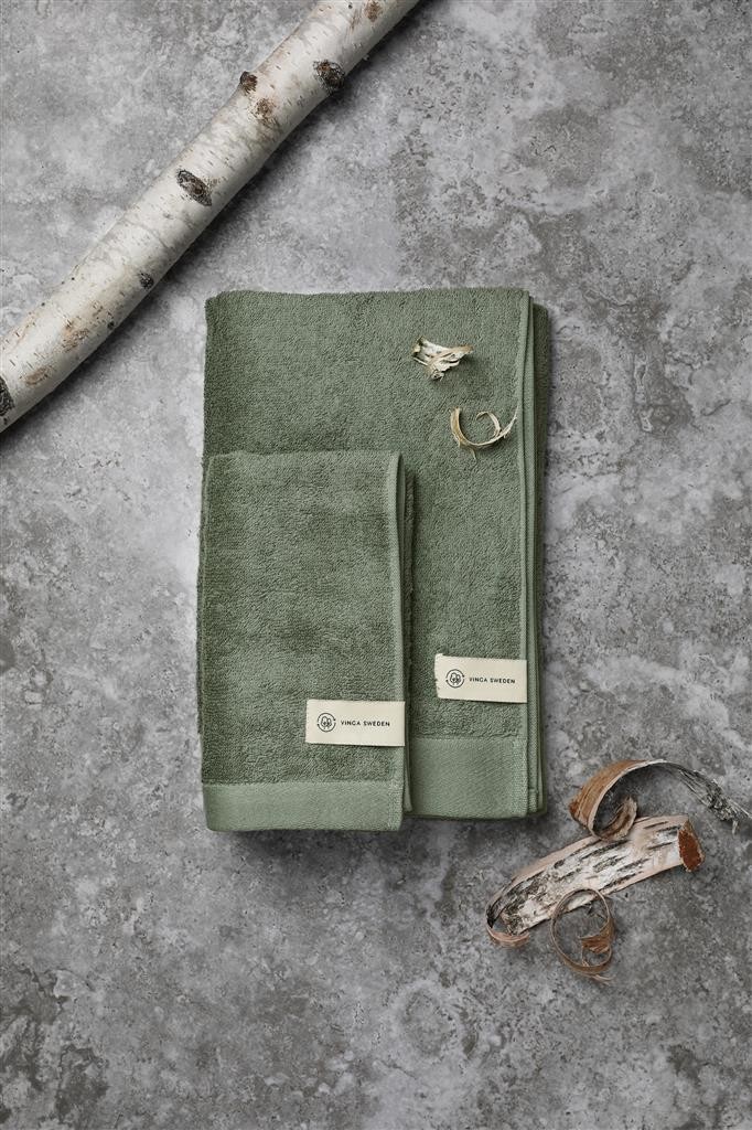 Ručníky ze 68 % z bavlny a ze 32 % z materiálu Tencel. Jedná se o přírodní vlákno získané z certifikovaných lesů. Vyrábí se energeticky a chemicky nejúčinnějším procesem, který máme v současné době k dispozici. Tato směs vytváří chladivou, měkkou a odolnou tkaninu, která je pevná na dotek a díky směsi Tencel má vynikající savost. Použitá bavlna má certifikát BCI, což je iniciativa, která pomáhá pěstitelům bavlny přejít od konvenčního k udržitelnějšímu způsobu hospodaření. Vyrábí se v zemitých tónech v různých velikostech.