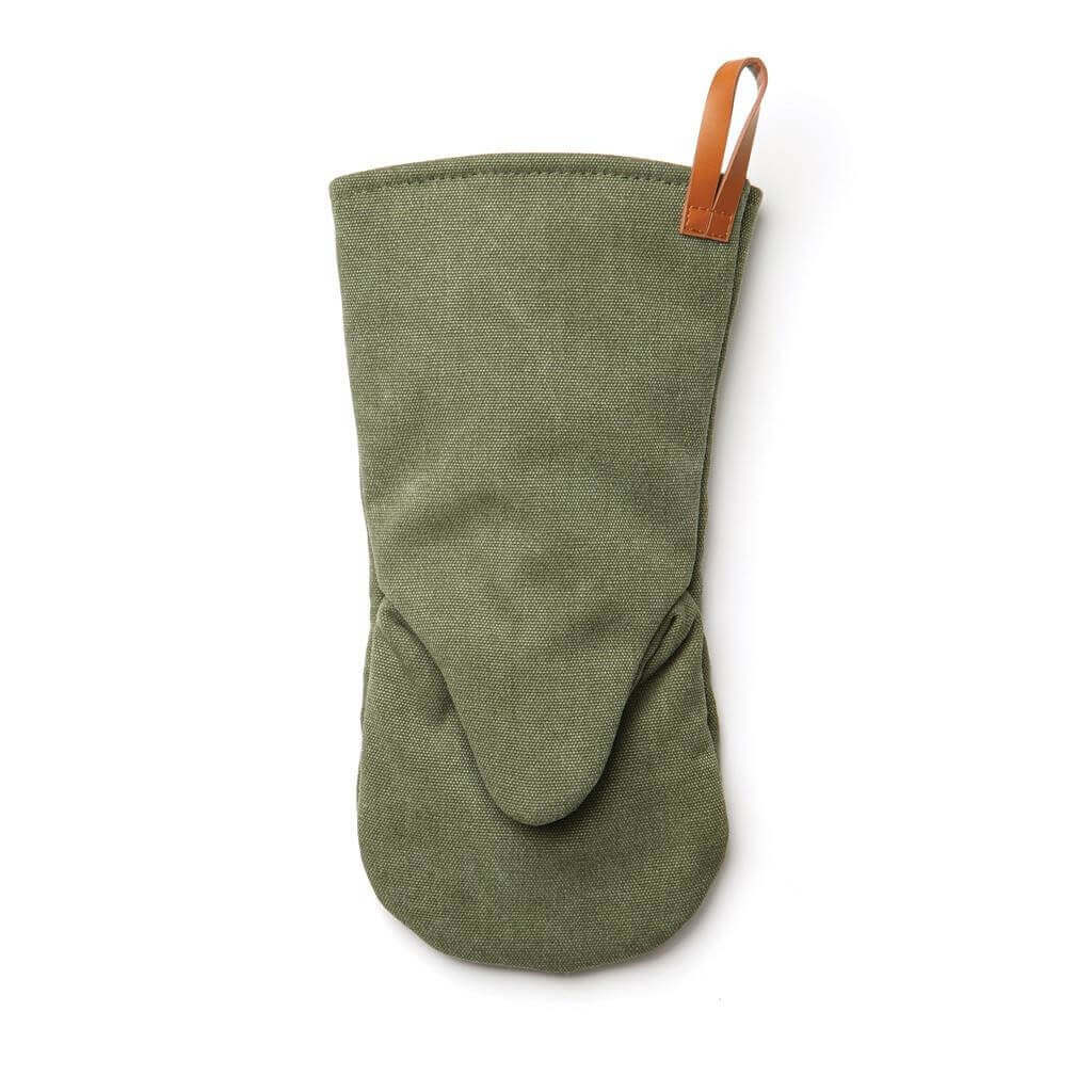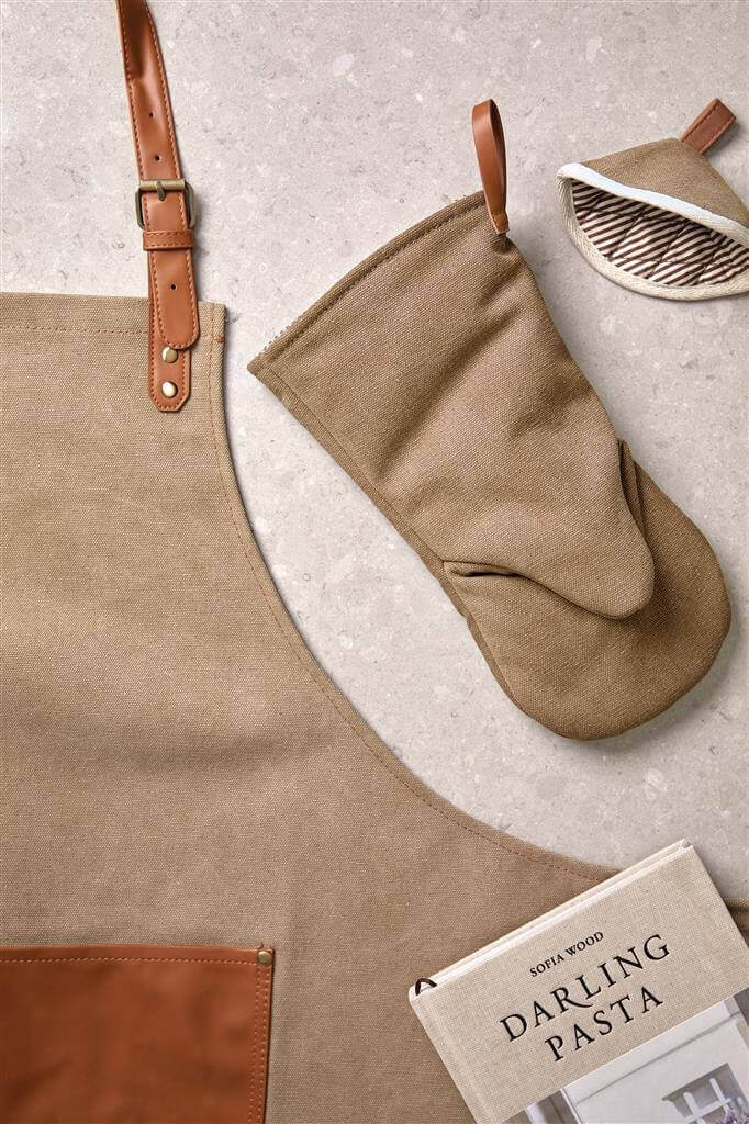 Praktické a stylové rukavice do trouby z bavlněného plátna. Bohatě polstrované, aby chránily vaše ruce při přenášení horkých pokrmů z kuchyně na stůl. Když stylovou rukavici zrovna nepoužíváte, pomocí praktického koženého poutku ji jednoduše pověsíte, aby byla vždy po ruce. Vhodná pro praváky i leváky.