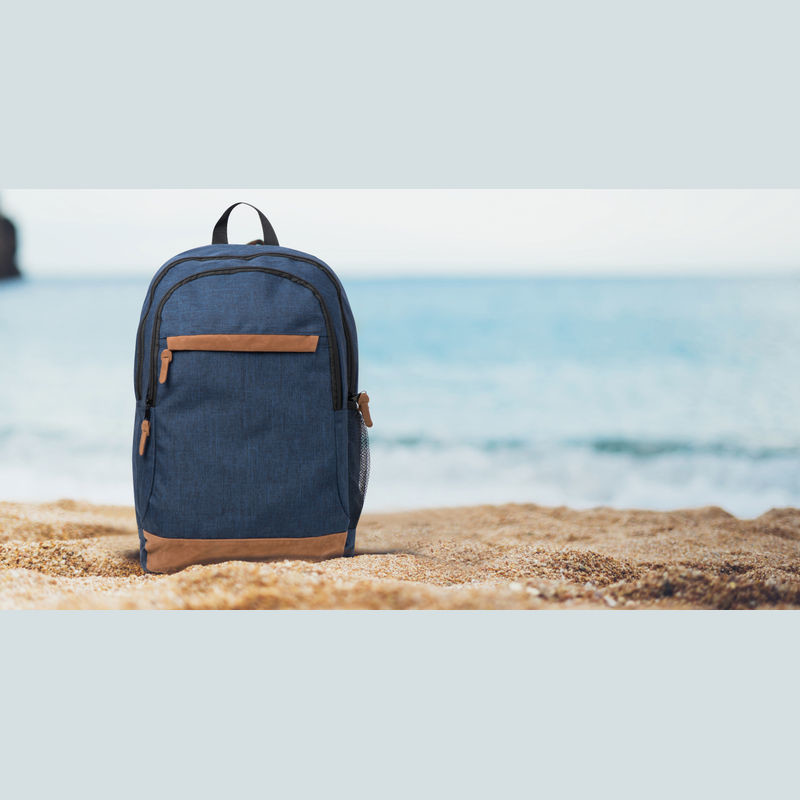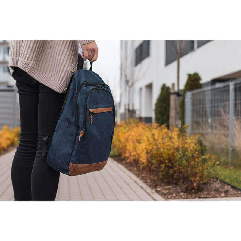 Batoh vyrobený ze 600D polyesteru s kontrastní spodní částí, uzavíráním na zip. Také obsahuje závěsnou smyčku, dva ramenní popruhy a pytel na přední části. Způsob potisku sítotisk.