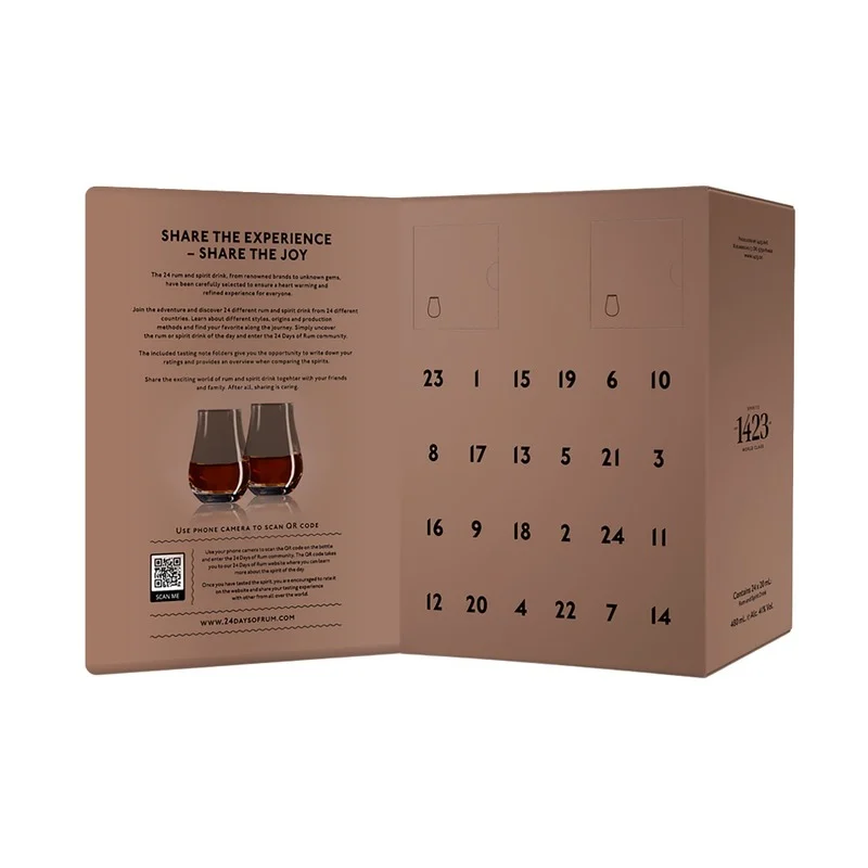 Exkluzivní degustační sada pro milovníky rumu i objevitele nových chutí. Každý den můžete poznat jiný rum z 24 zemí světa, v elegantním balení se dvěma skleničkami a zápisníky na poznámky. Limitovaná Black Edition zaujme luxusním designem a je skvělým dárkem na Vánoce i mimo ně. Užijte si nezapomenutelnou rumovou cestu a rozšiřte si obzory s každým douškem. Objem: 480 ml (24 × 20 ml)