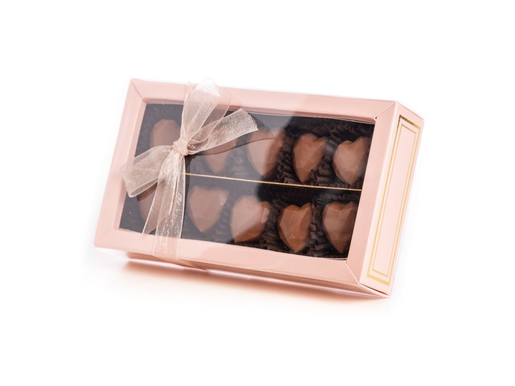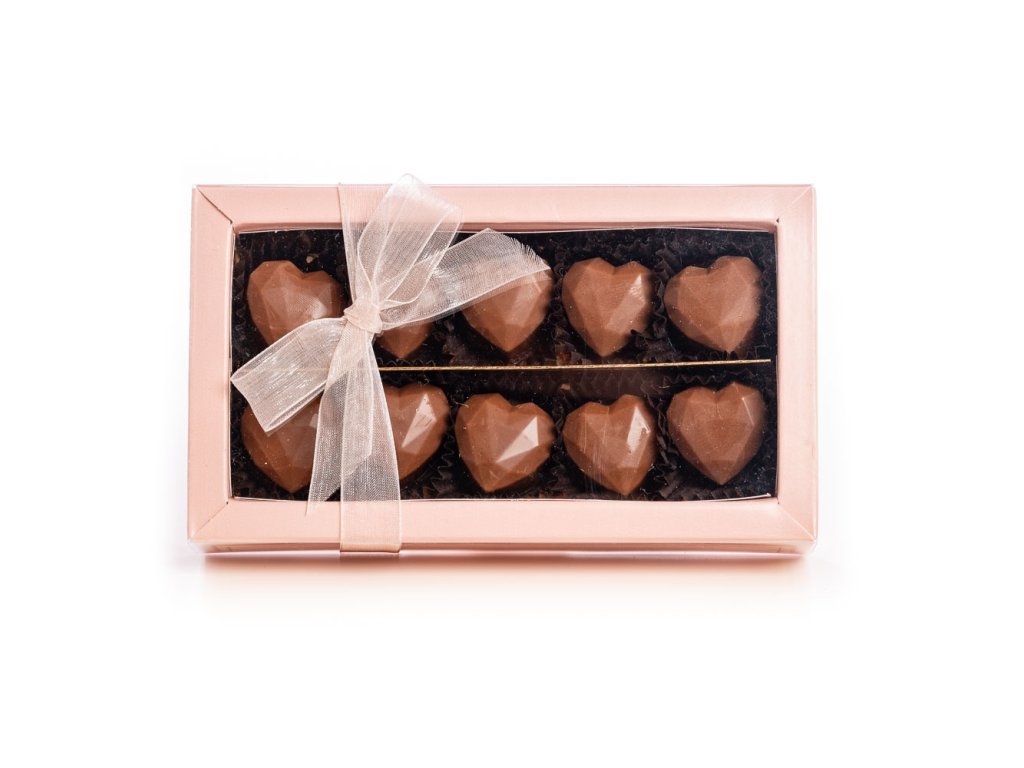 Skvělé mléčné pralinky bean to bar s lískooříškovou pastou a lyofilizovanou jahodou v růžové krabičce. Tyto pralinky si jednoduše zamilujete. Mléčné pralinky bean to bar z kakaových bobů z Peru vás dostanou autenticitou a zemitou chutí kakaa, která vydrží na jazyku ještě dlouho po posledním kousku. Zároveň s jemnou lískooříškovou pastou a lyofilizovanými jahodami ucítíte jak chuť čokolády, tak oříšku a nakonec svěží jahody. Růžovou krabičku se zlatými prvky jsme zároveň navíc ozdobili světlou mašlí, která dodává ten správný smysl pro krásný dárek. Krabička obsahuje 10ks srdíček v mléčné čokoládě s lískooříškovou náplní a jahodou.